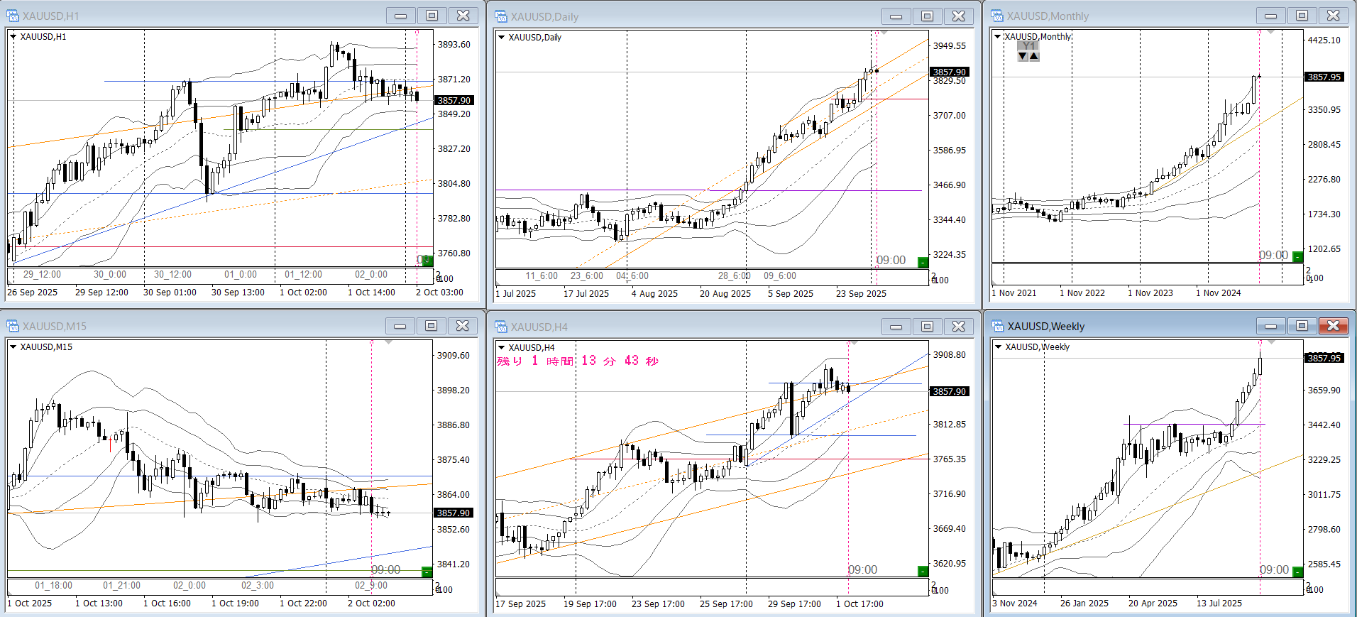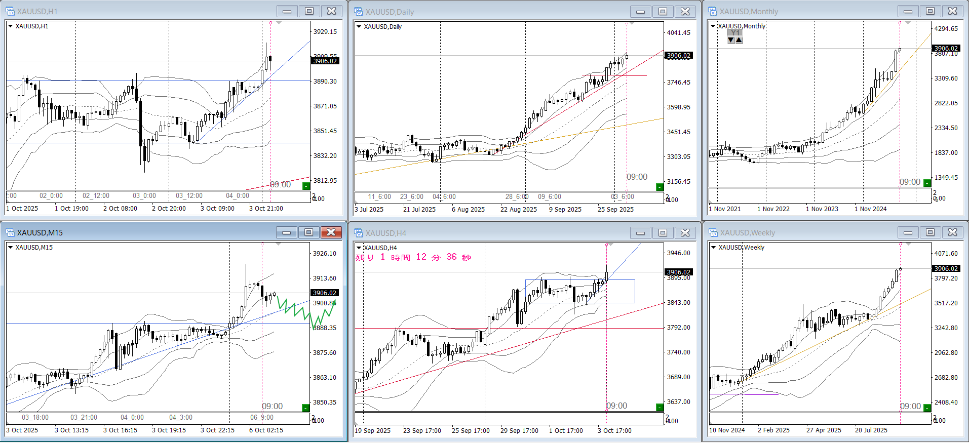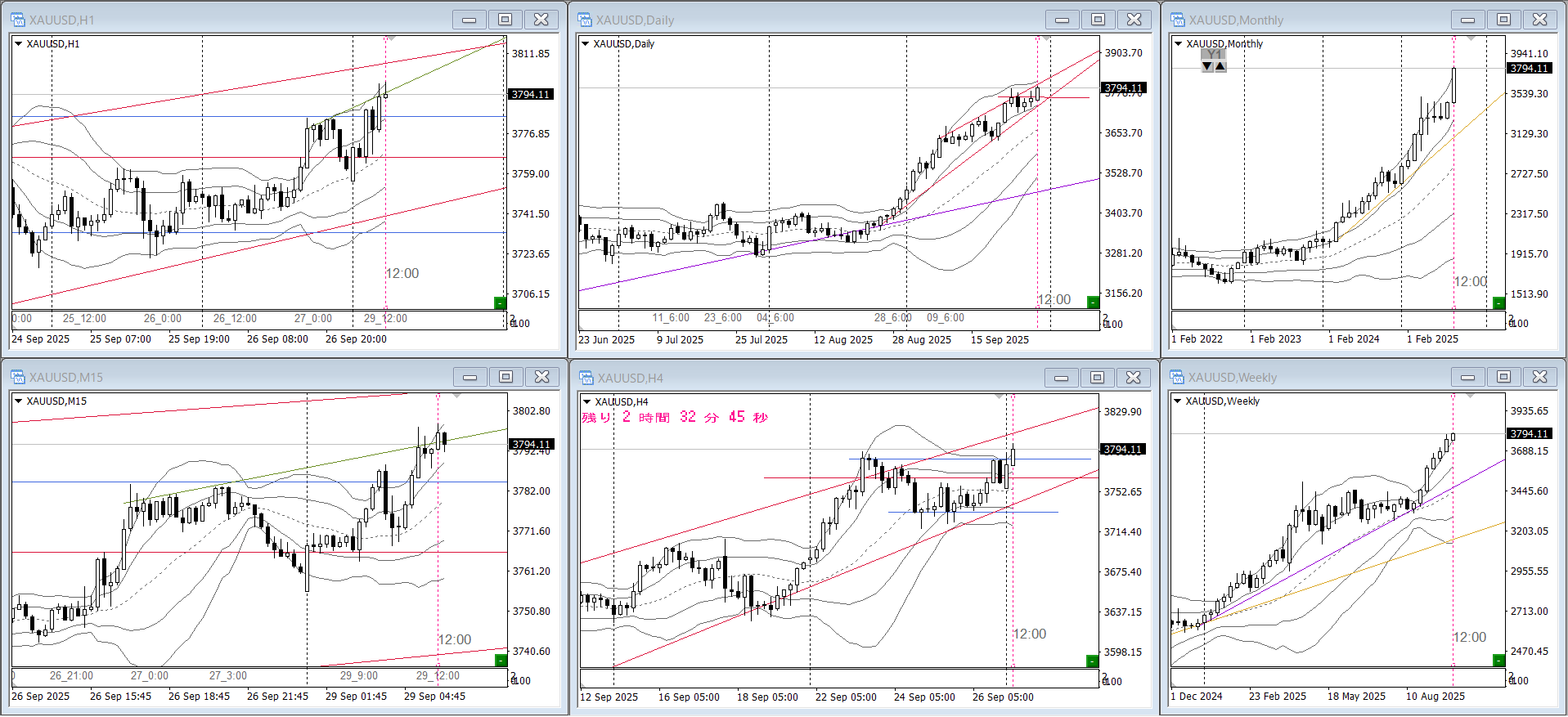 日足は中トレンド、4Hはチャネルです