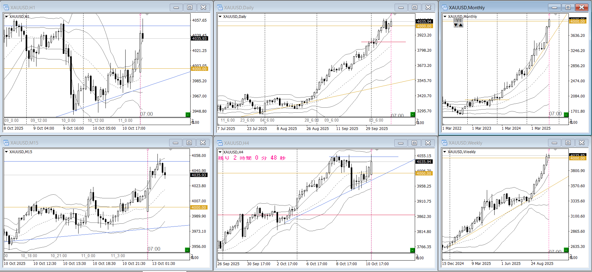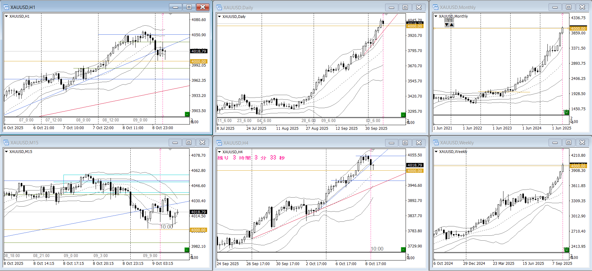 月週強トレンドですが4000の大台に到達しました