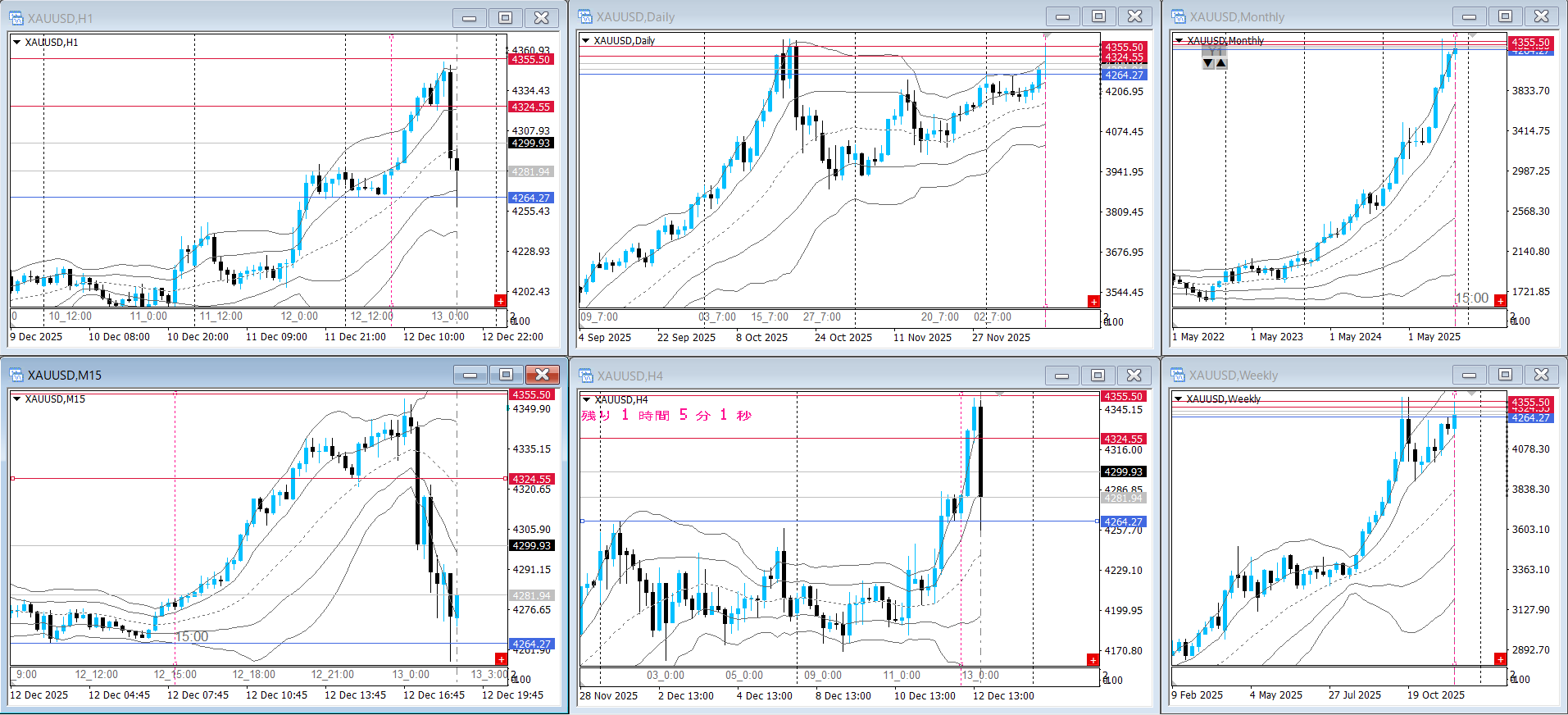 その日足レンジ上限で4Hが大レンジ
