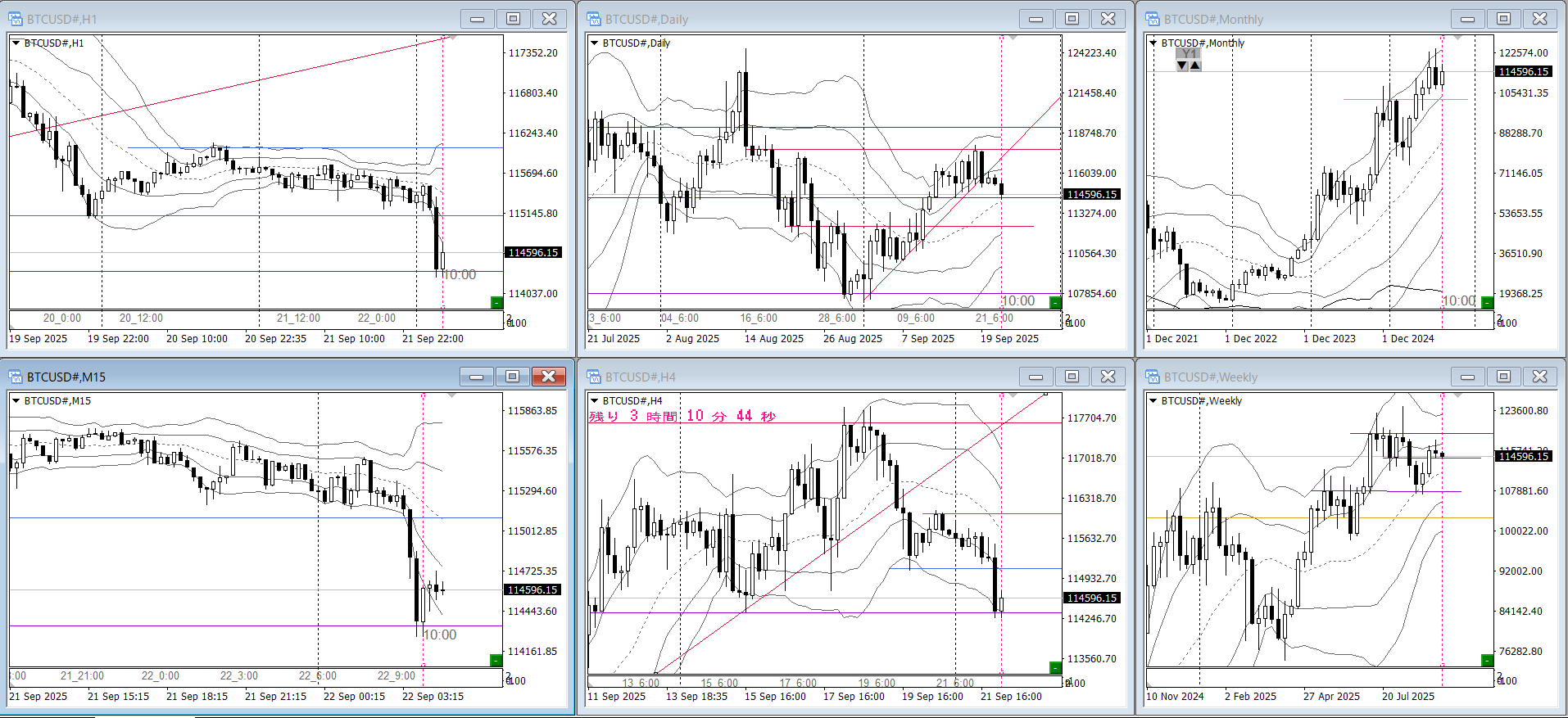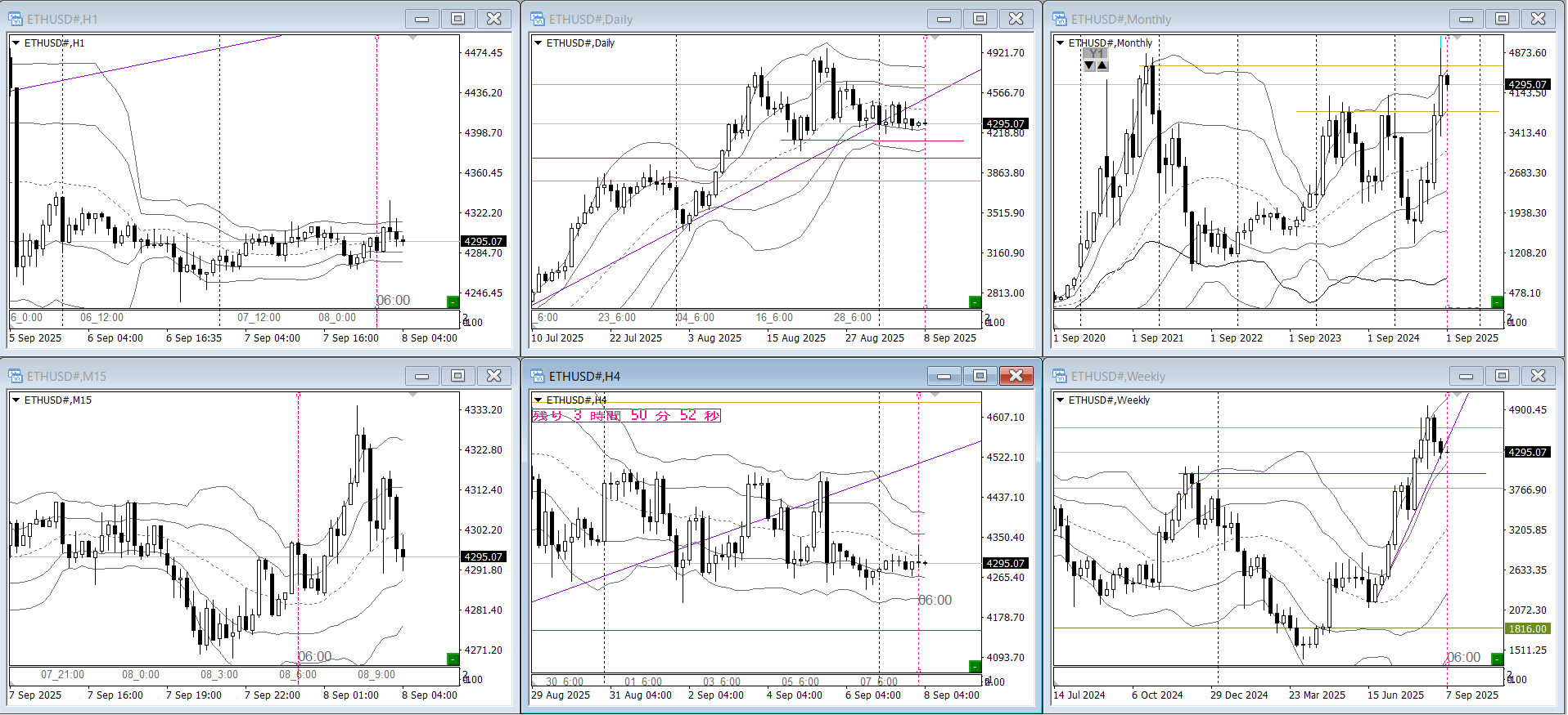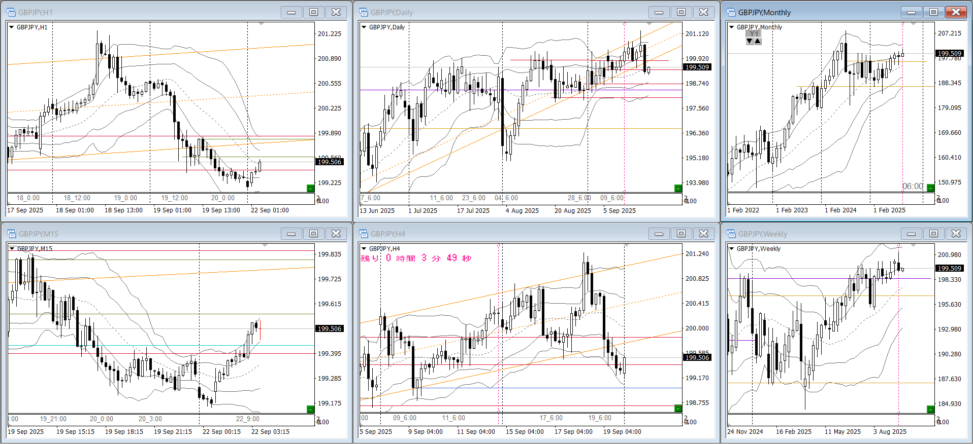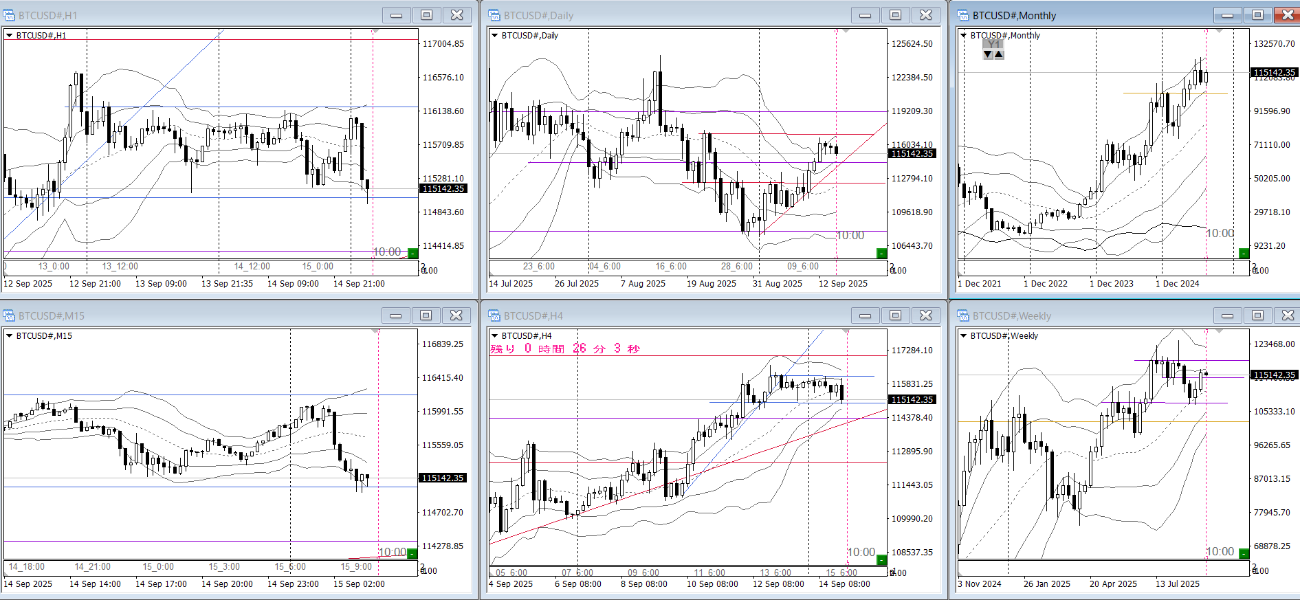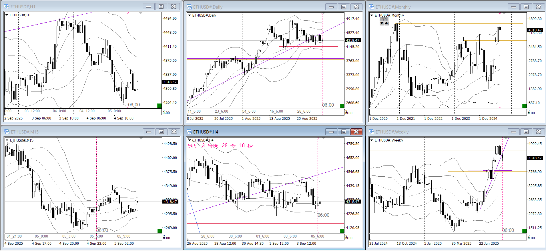 4Hダウ継続点(1Hレンジ上限)での1σ反発を待つ