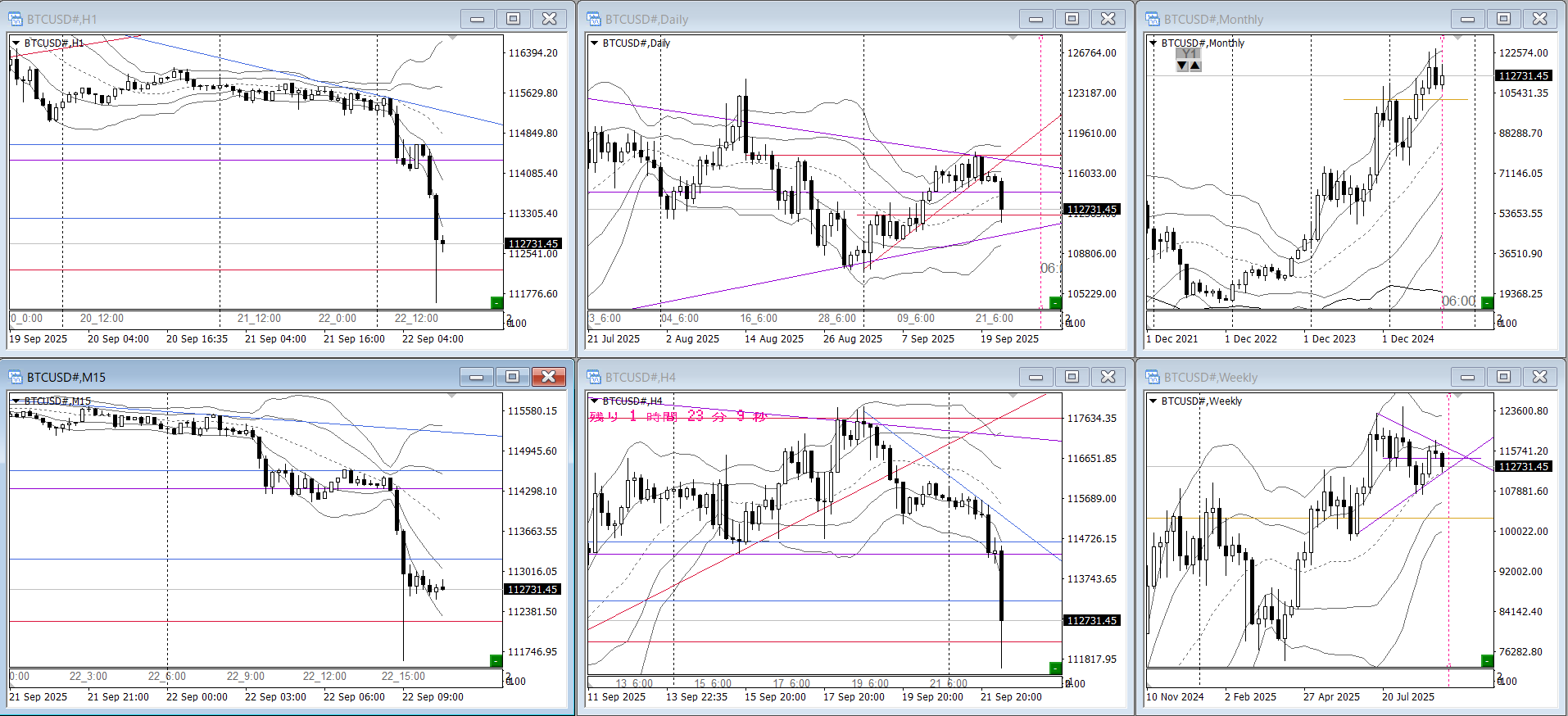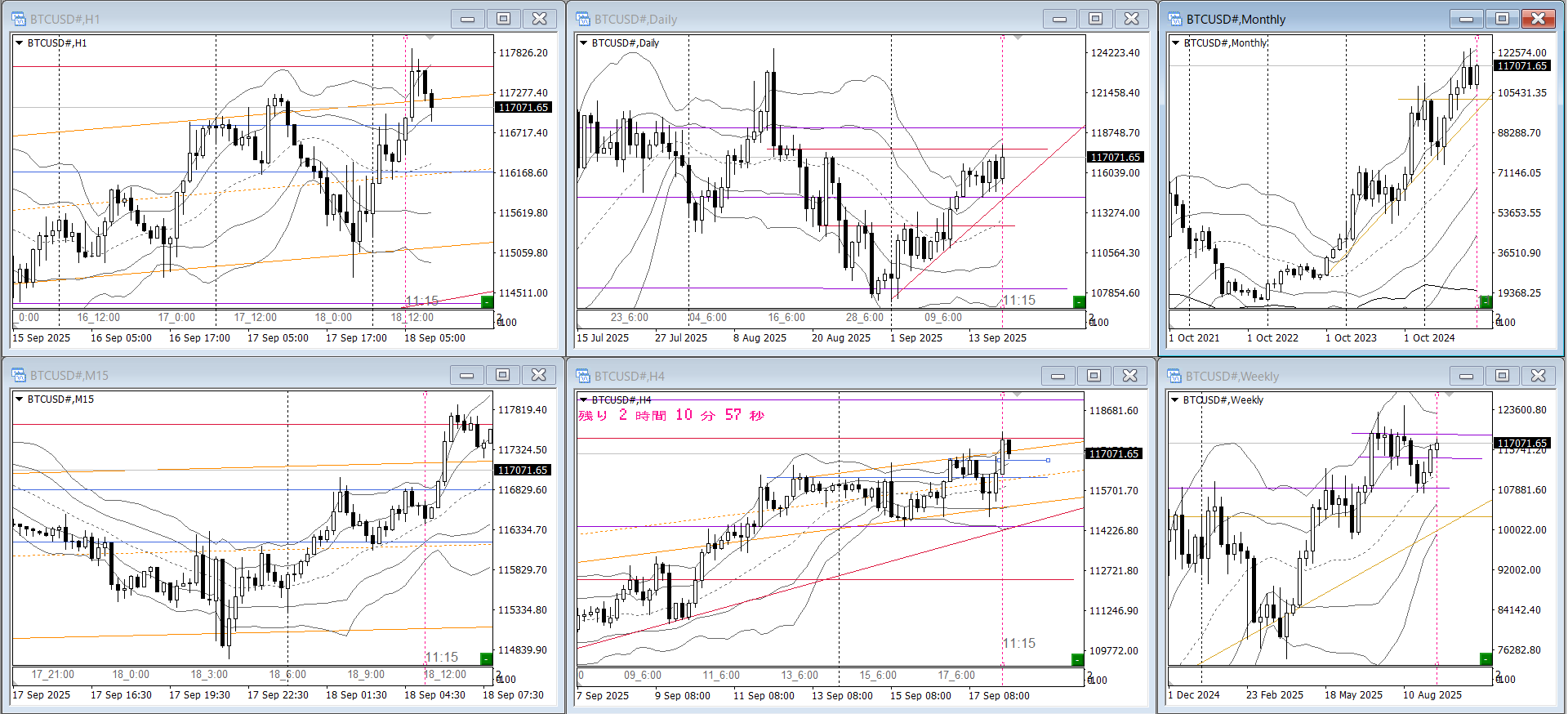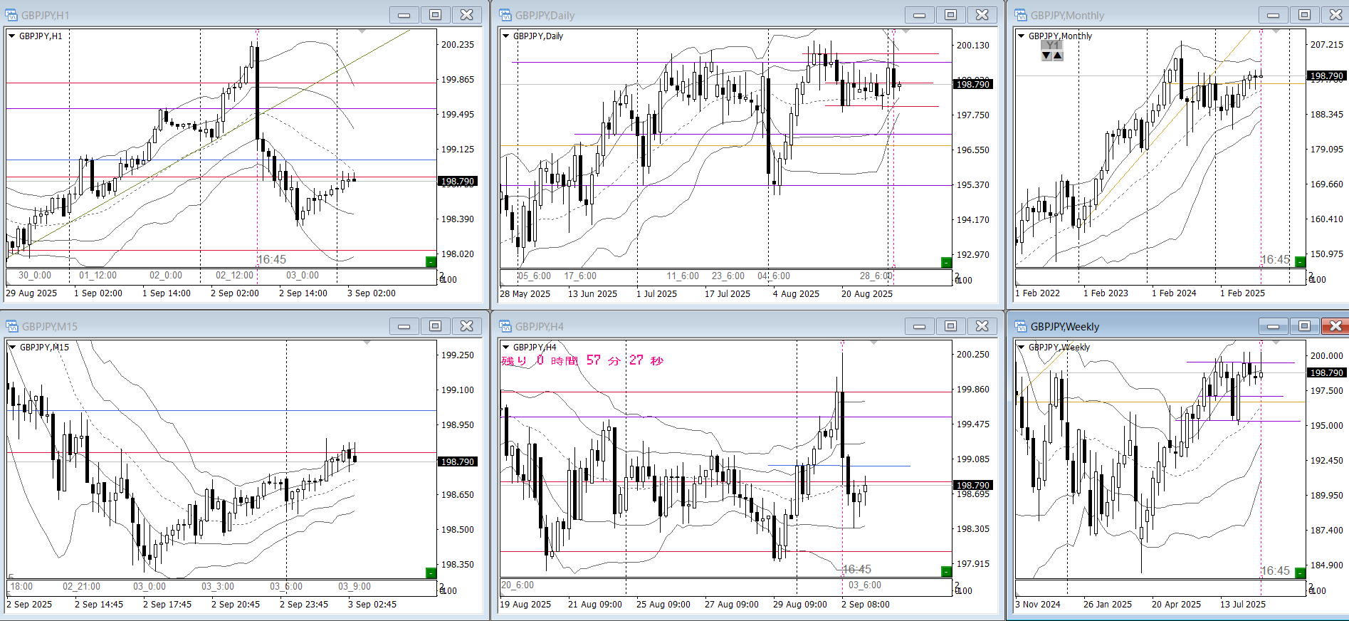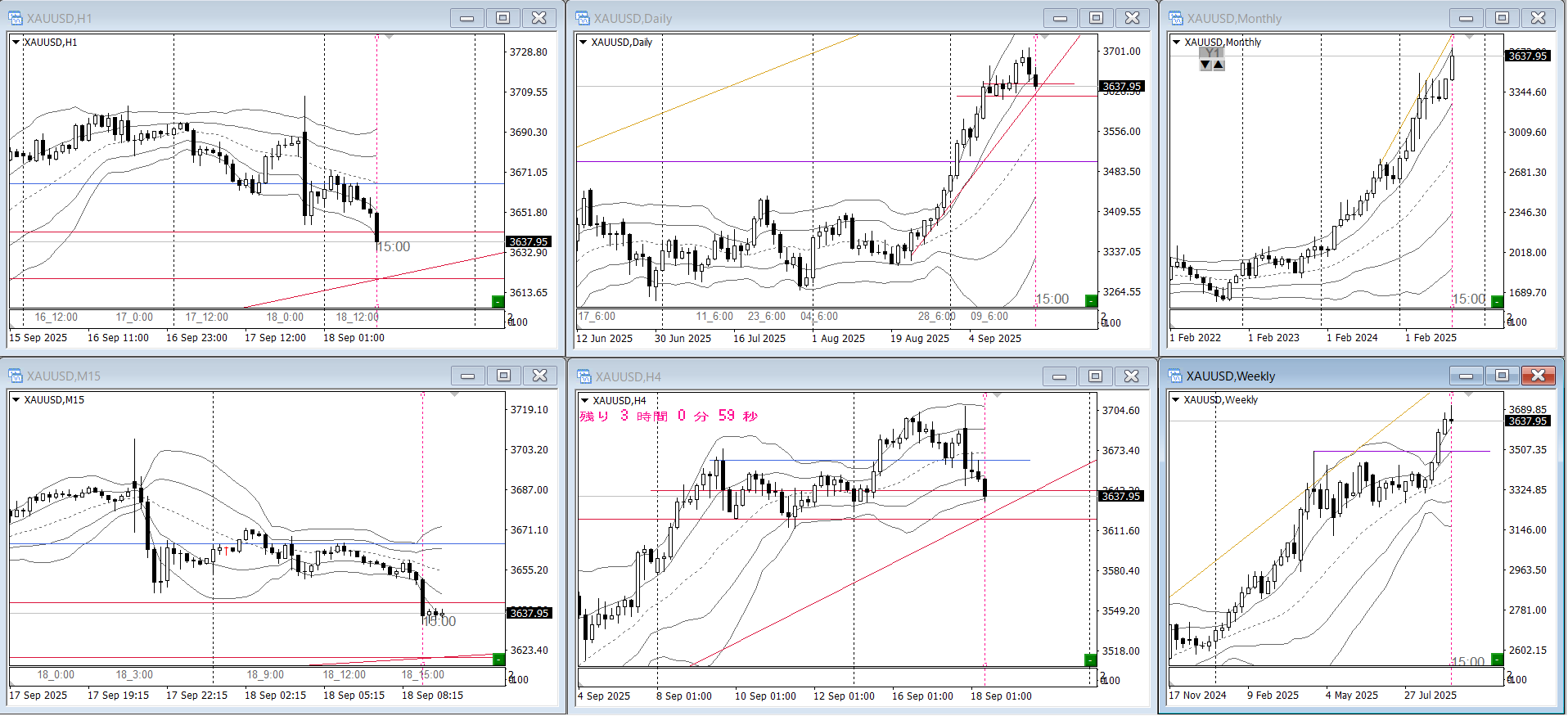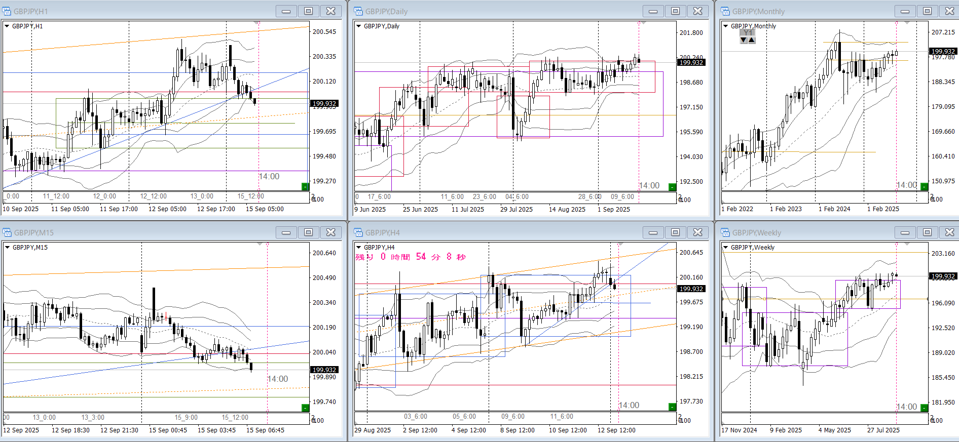 4Hダウ継続点(1Hレンジ上限)での1σ反発を待つ