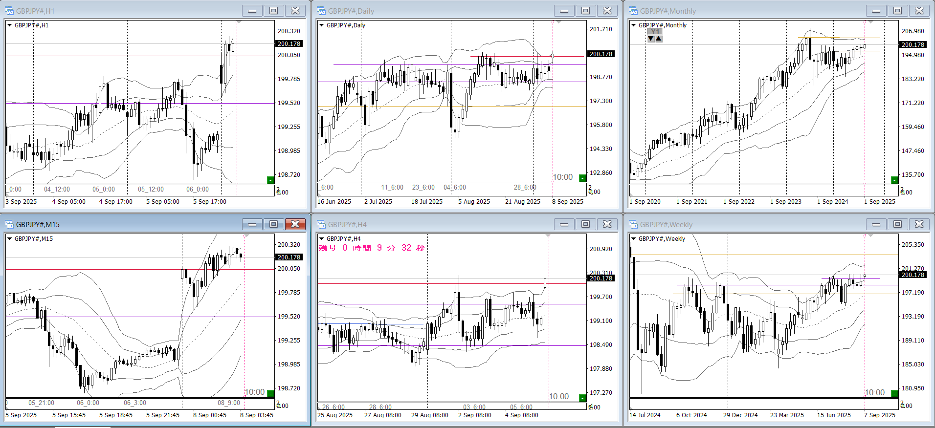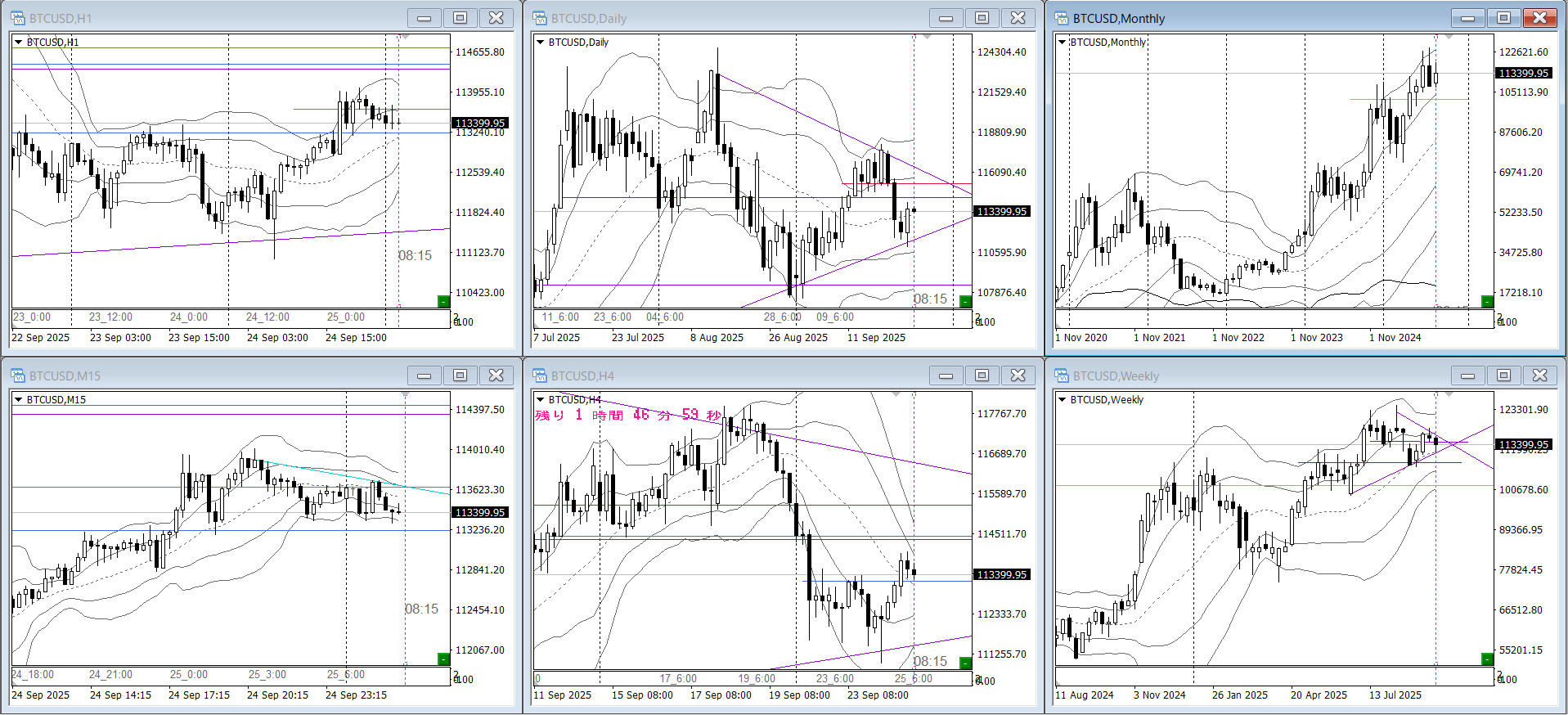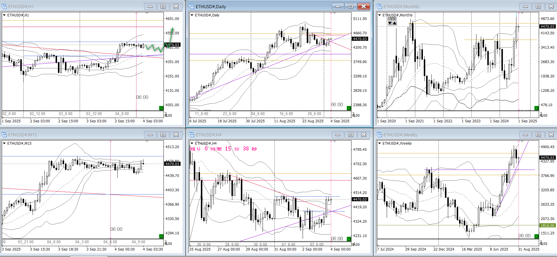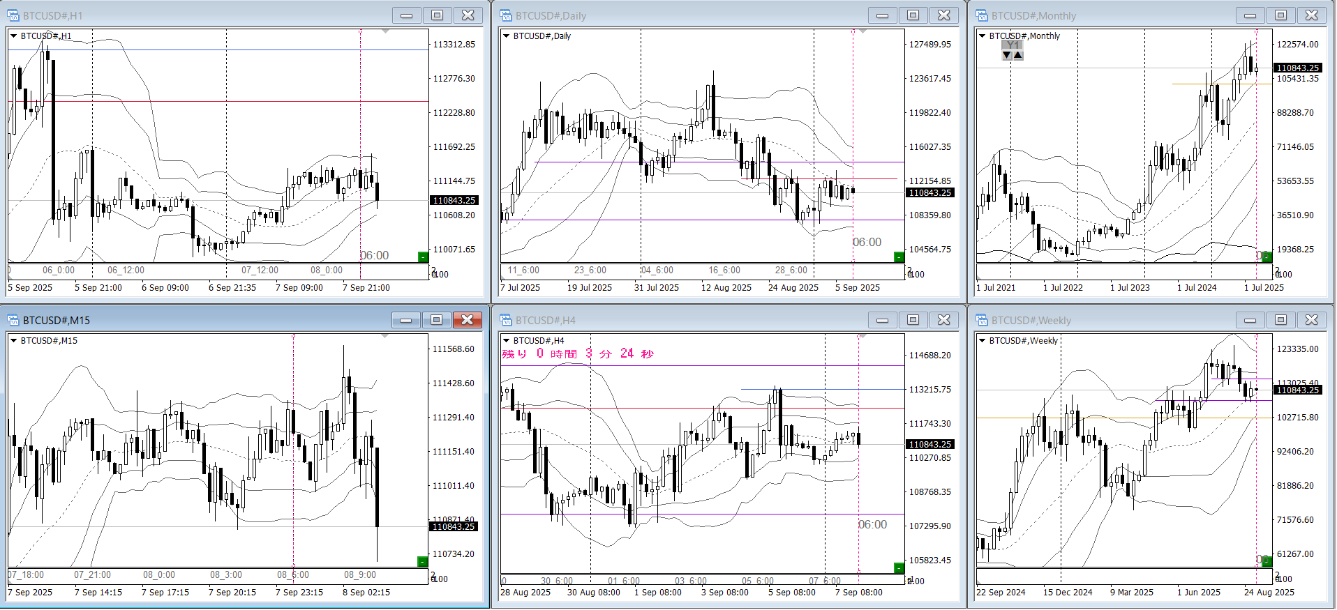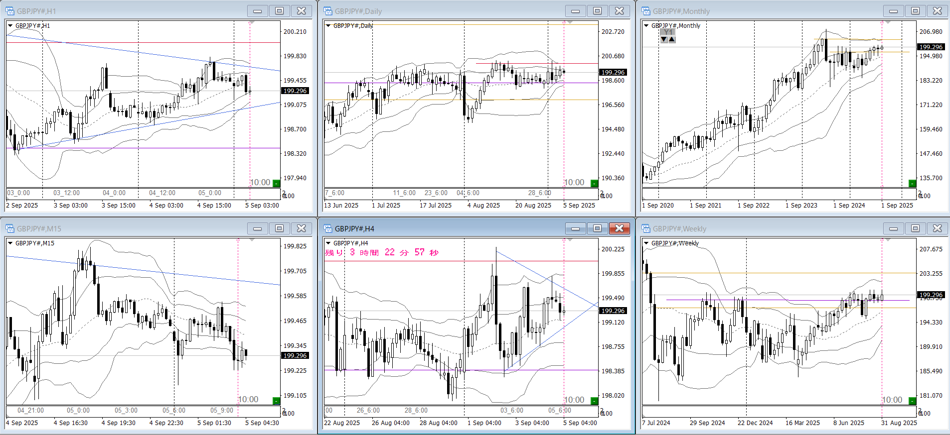 4Hダウ継続点(1Hレンジ上限)での1σ反発を待つ
