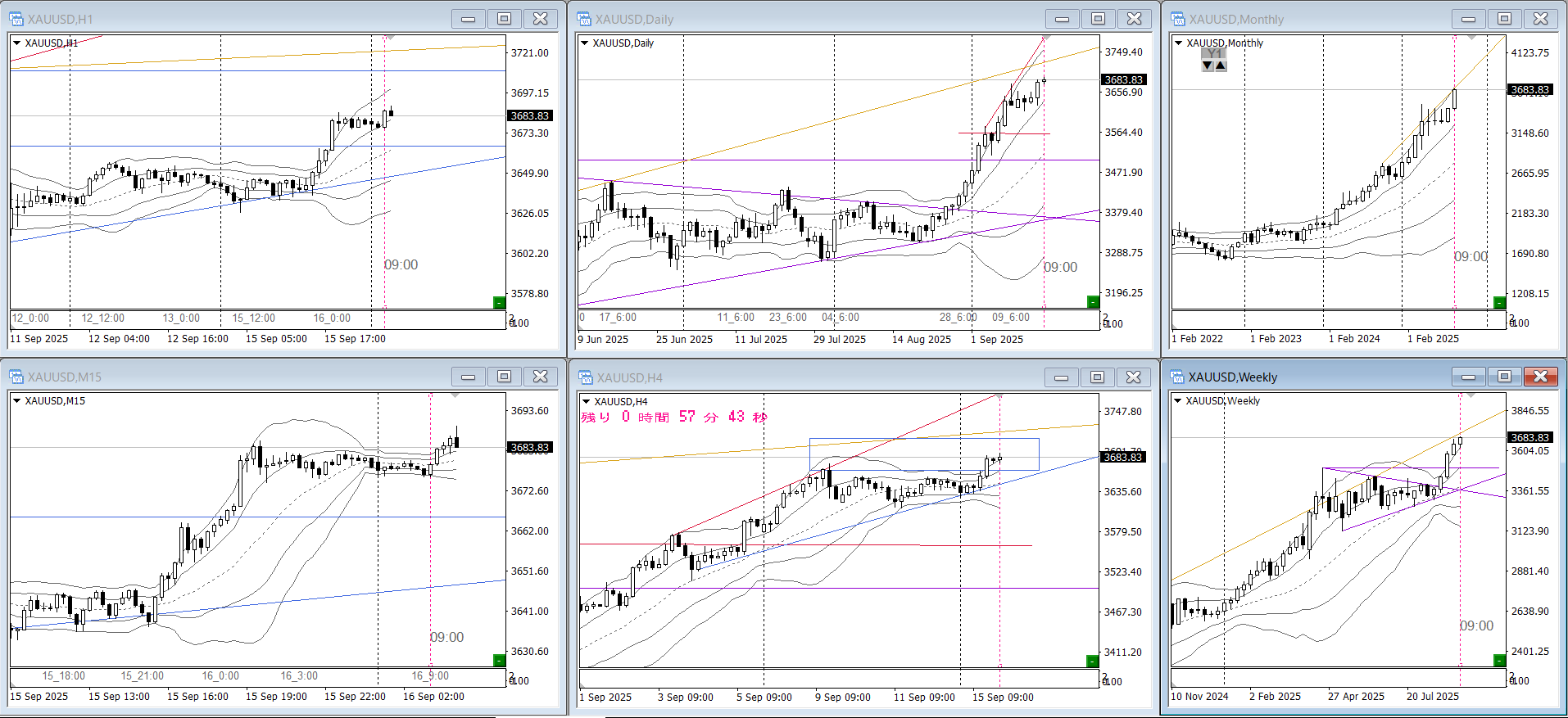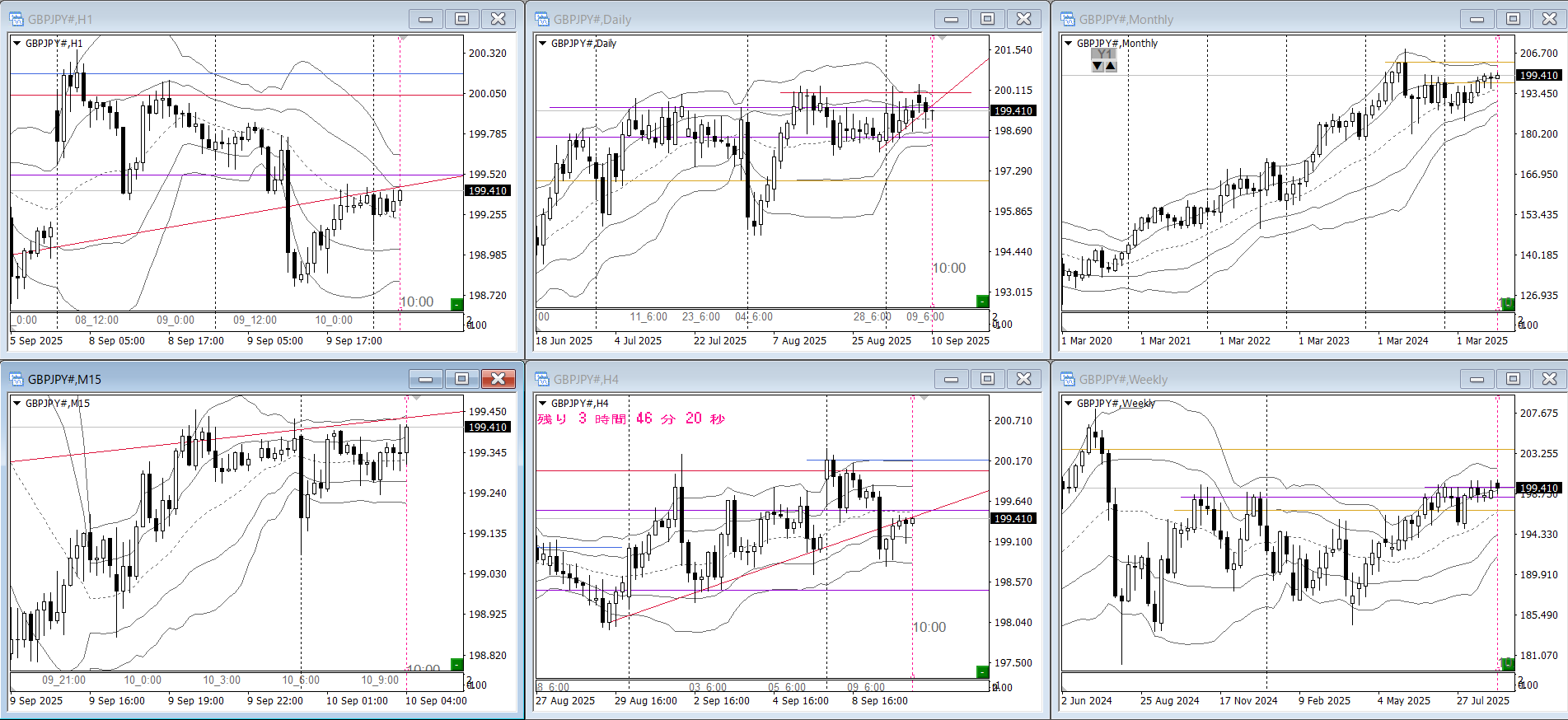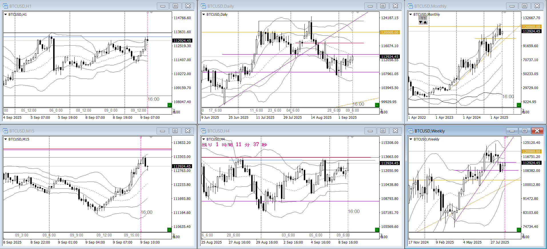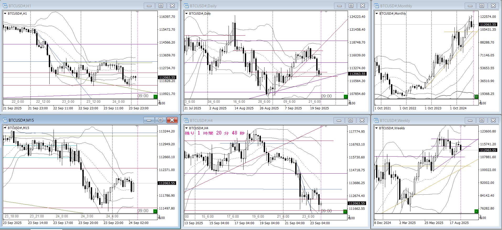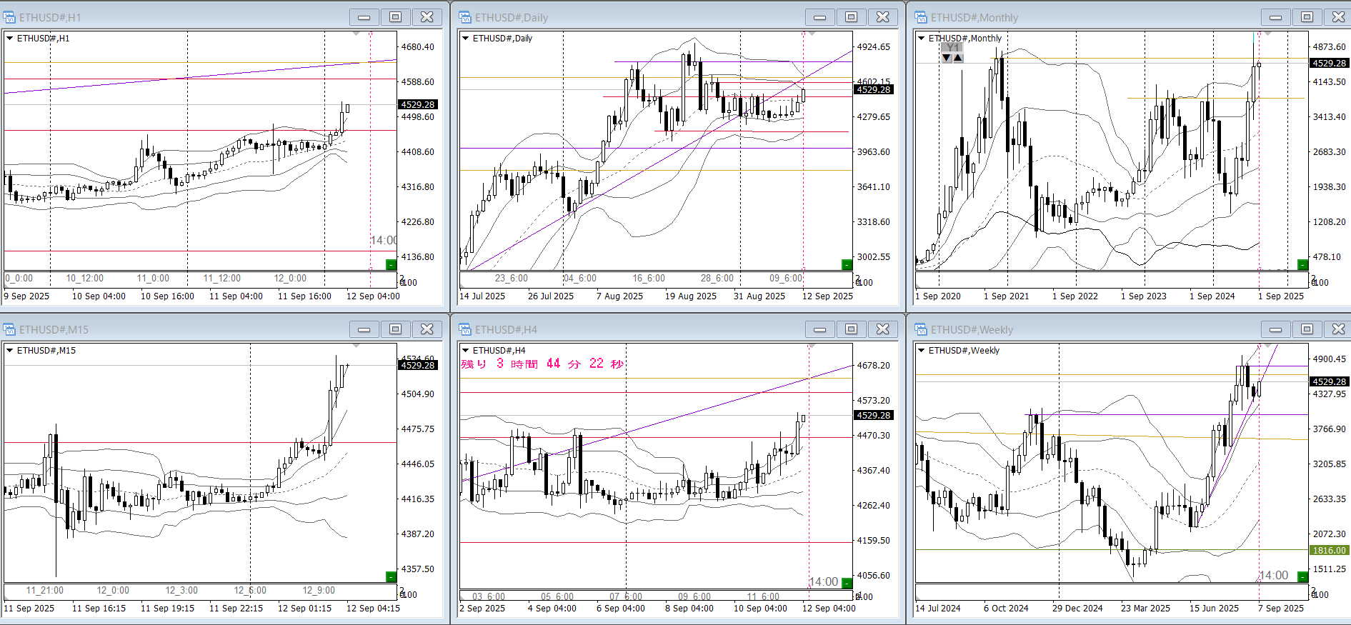 4Hダウ継続点(1Hレンジ上限)での1σ反発を待つ