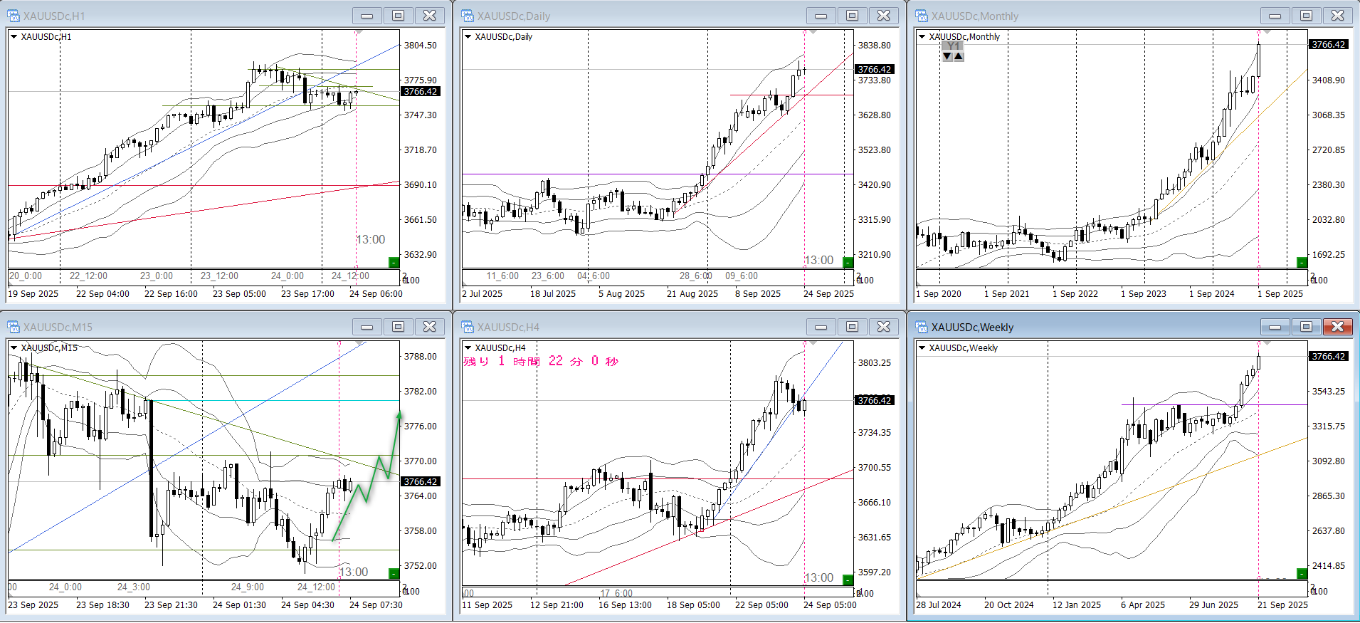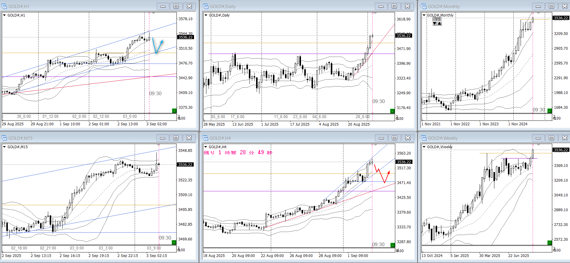 GOLDだから4Hの半値戻しでもピプスが100ある