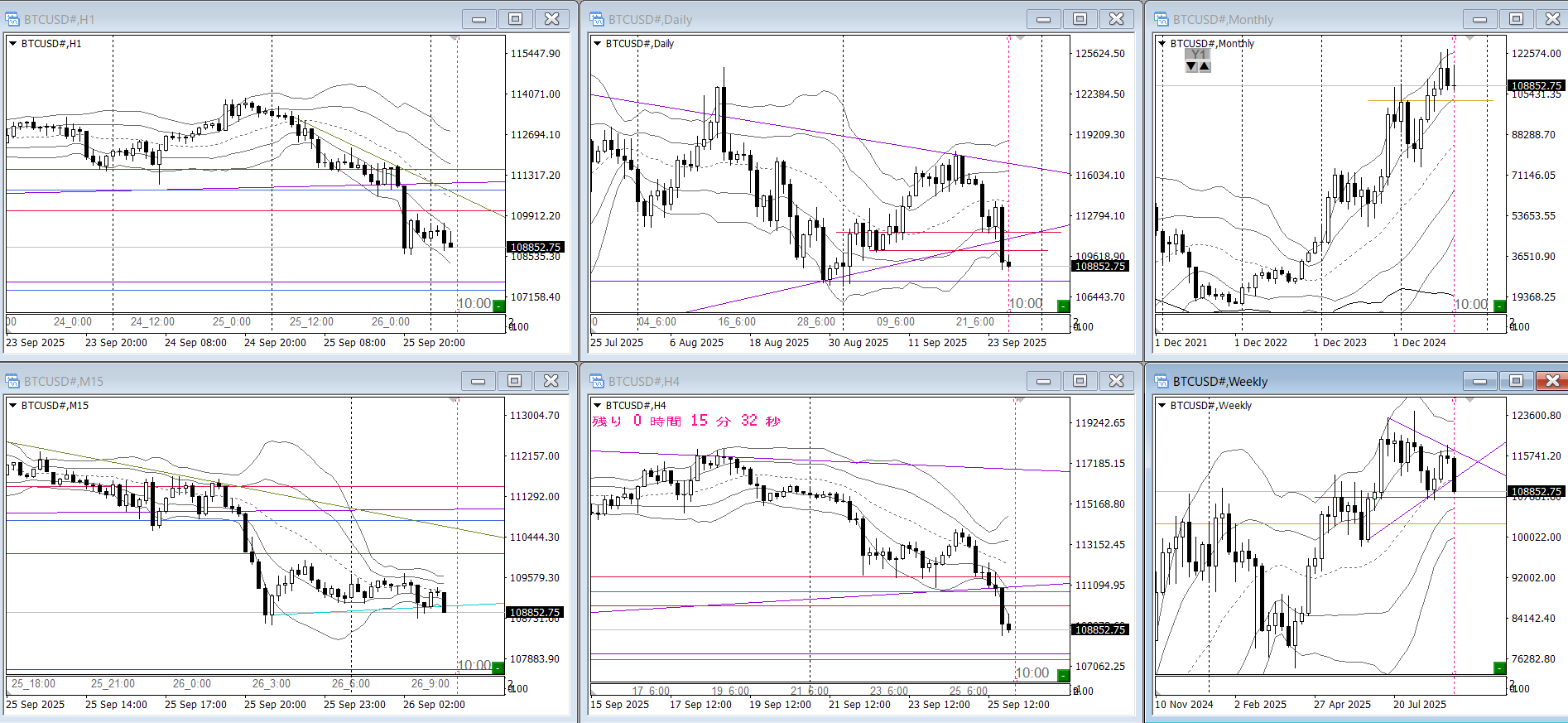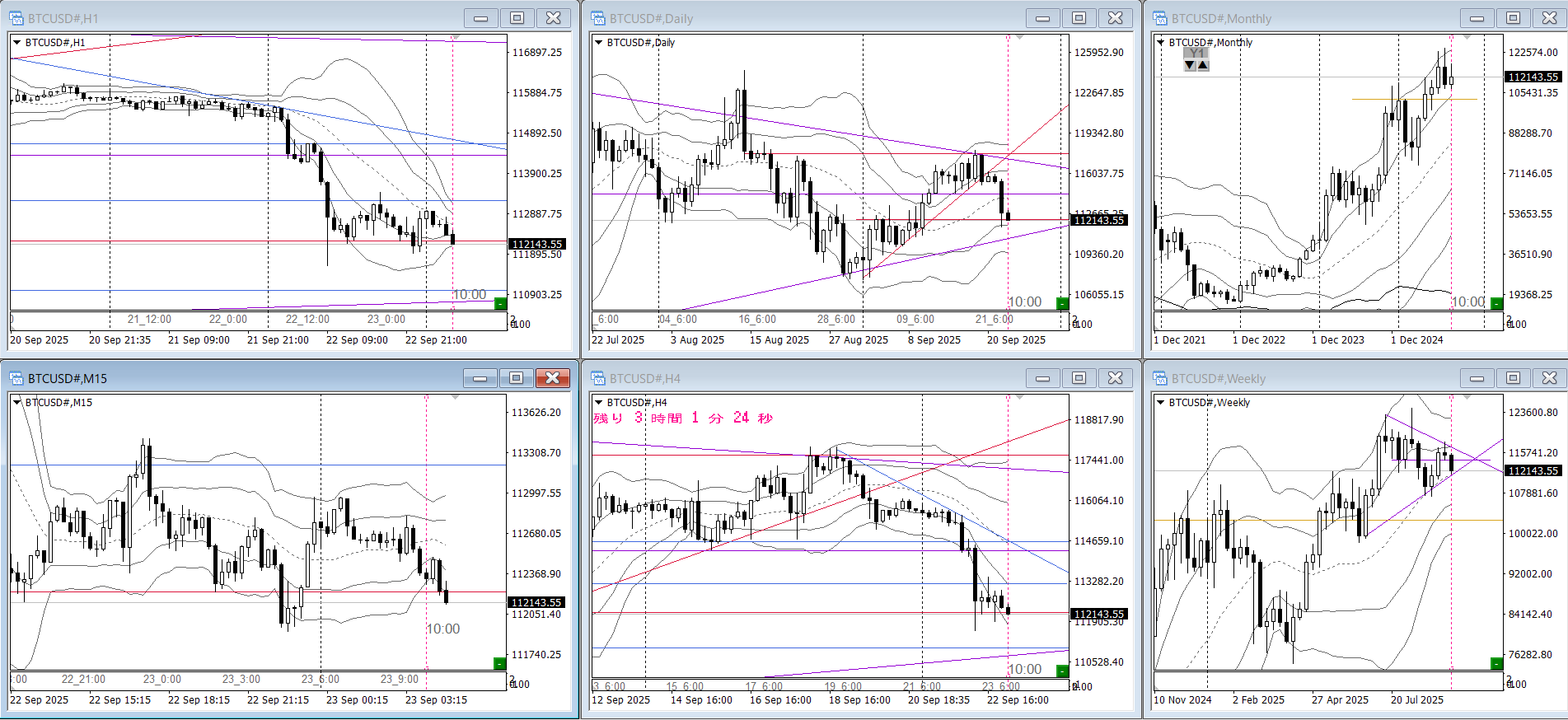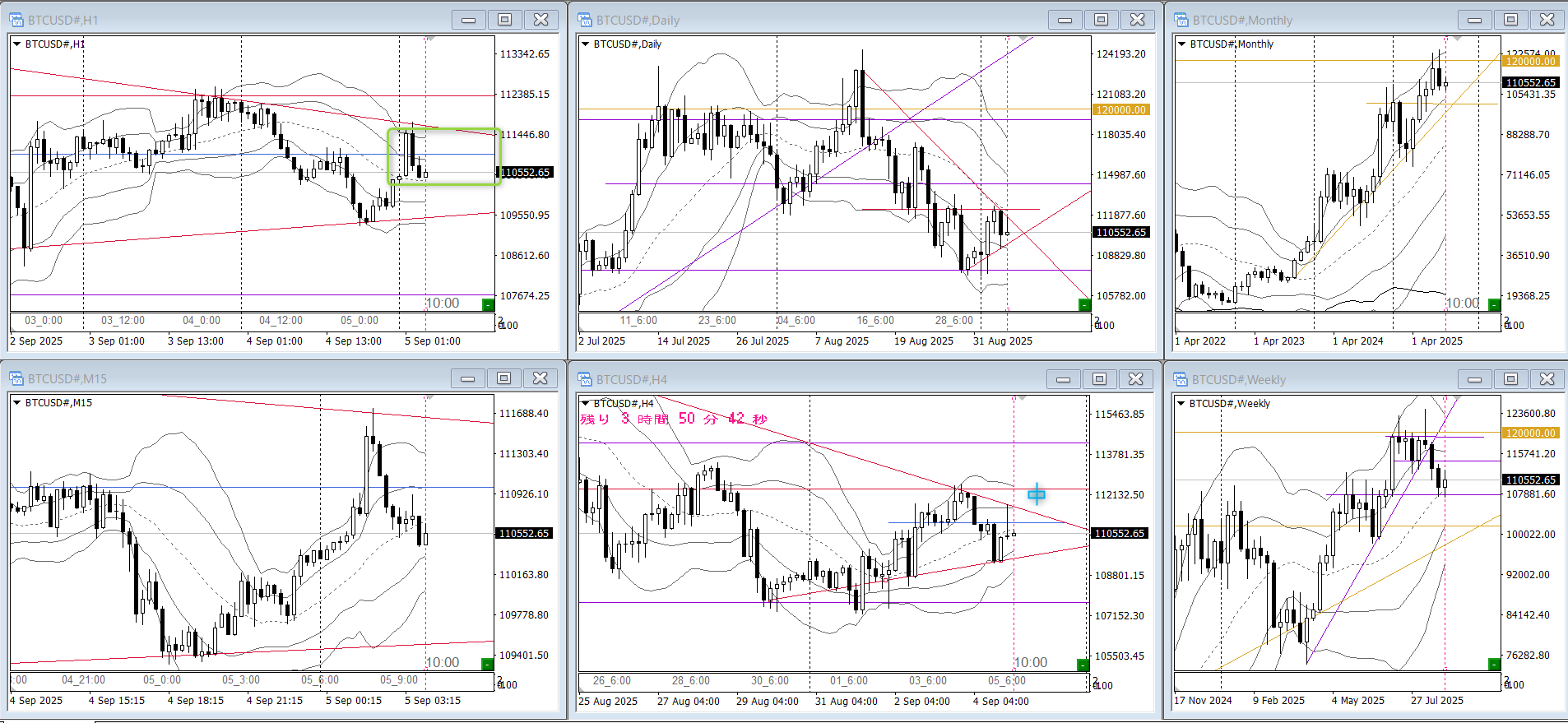 週足内部ダウ継続点まで落ちて来たときの4HMA半値戻しを狙っていく