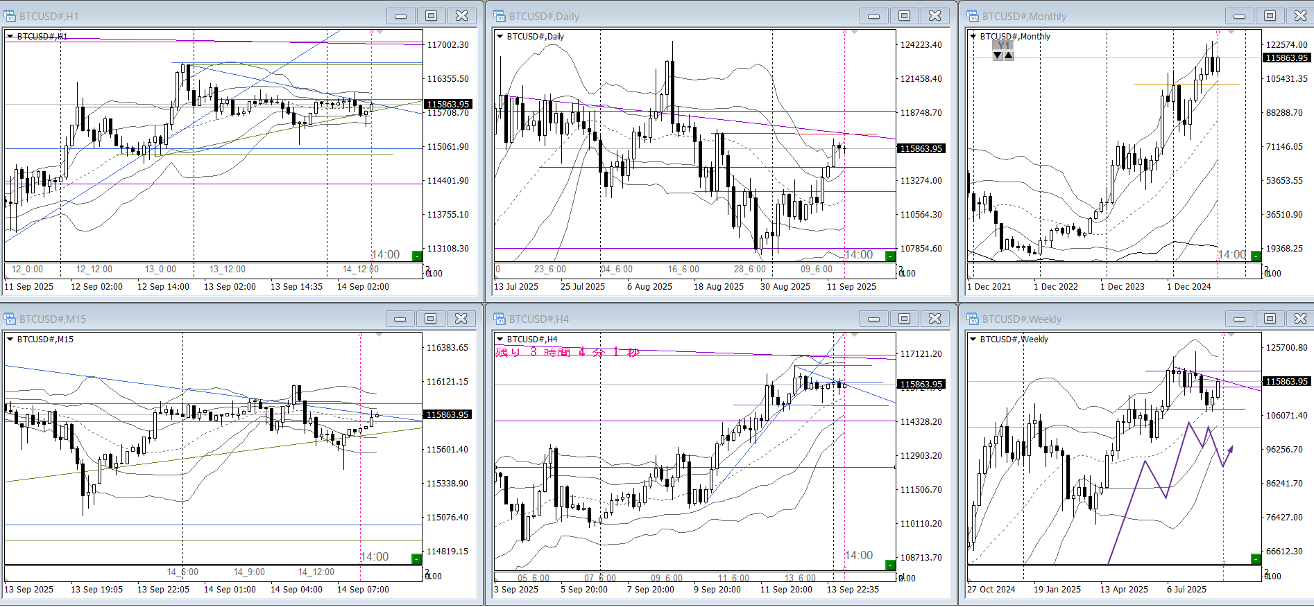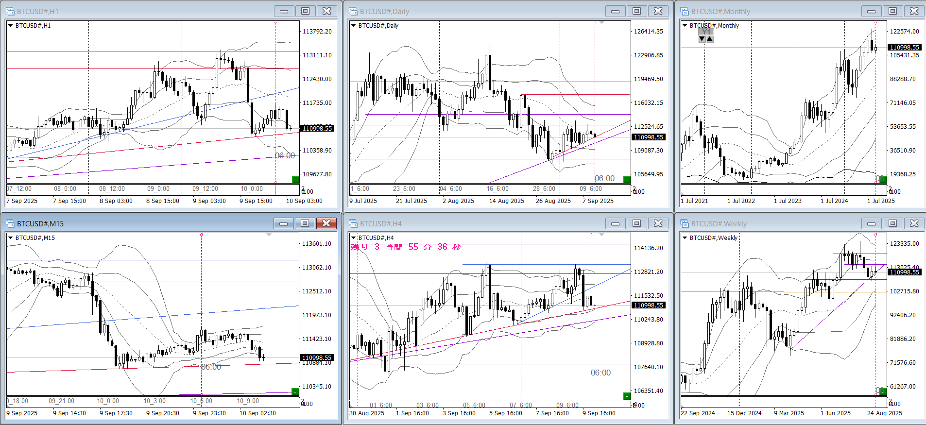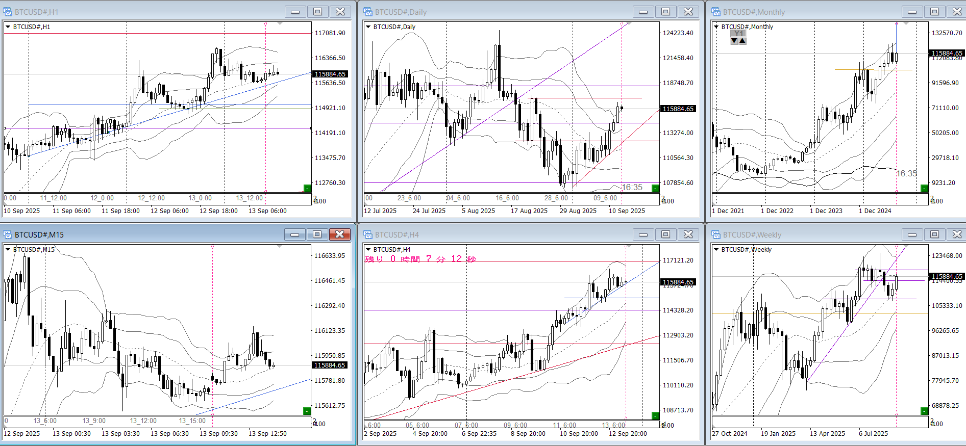 週足内部ダウ継続点まで落ちて来たときの4HMA半値戻しを狙っていく