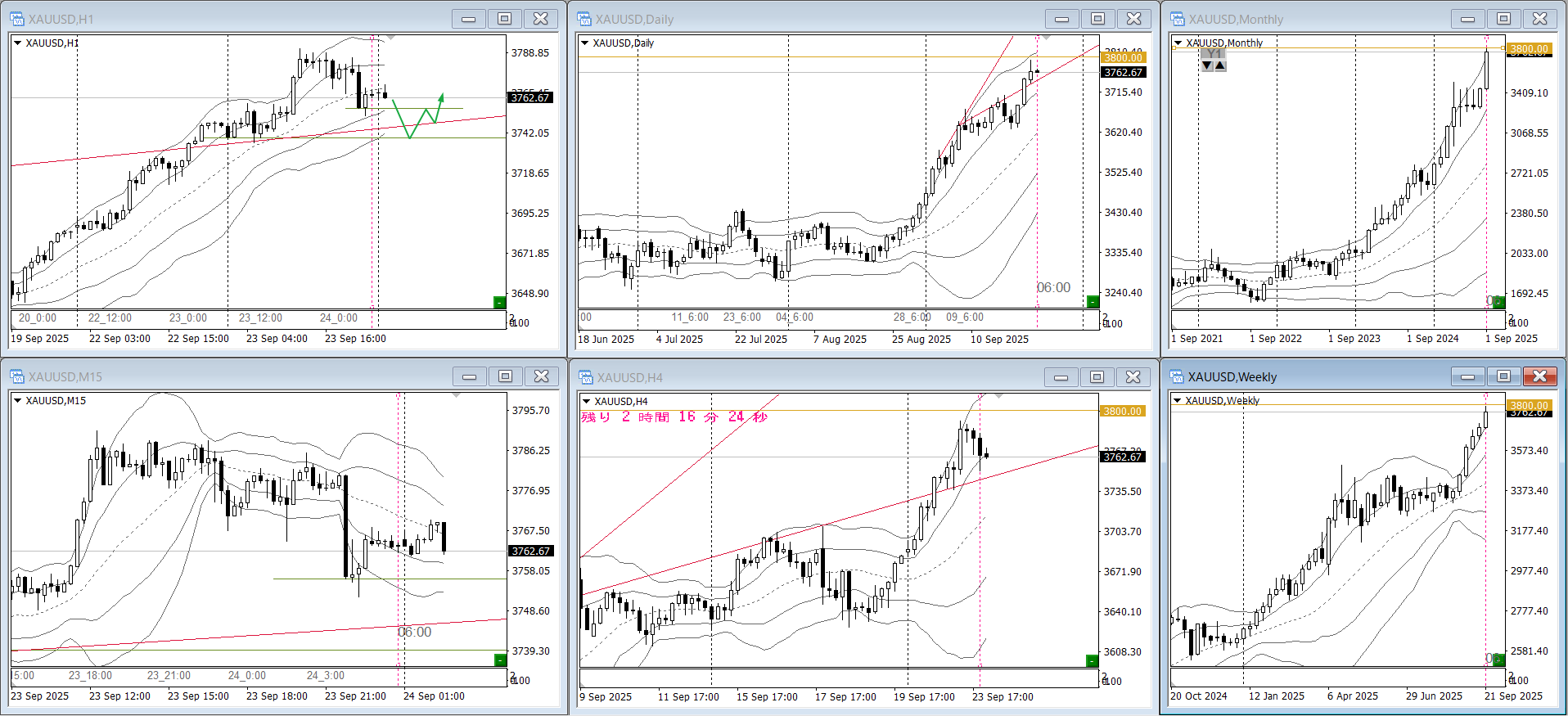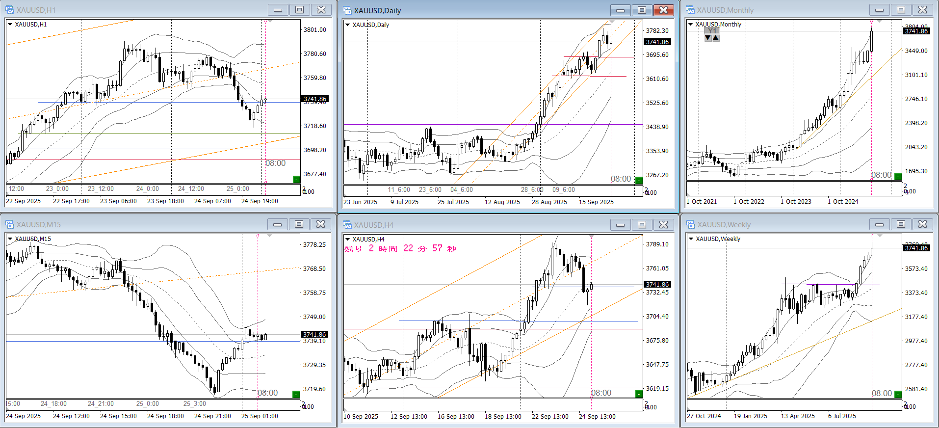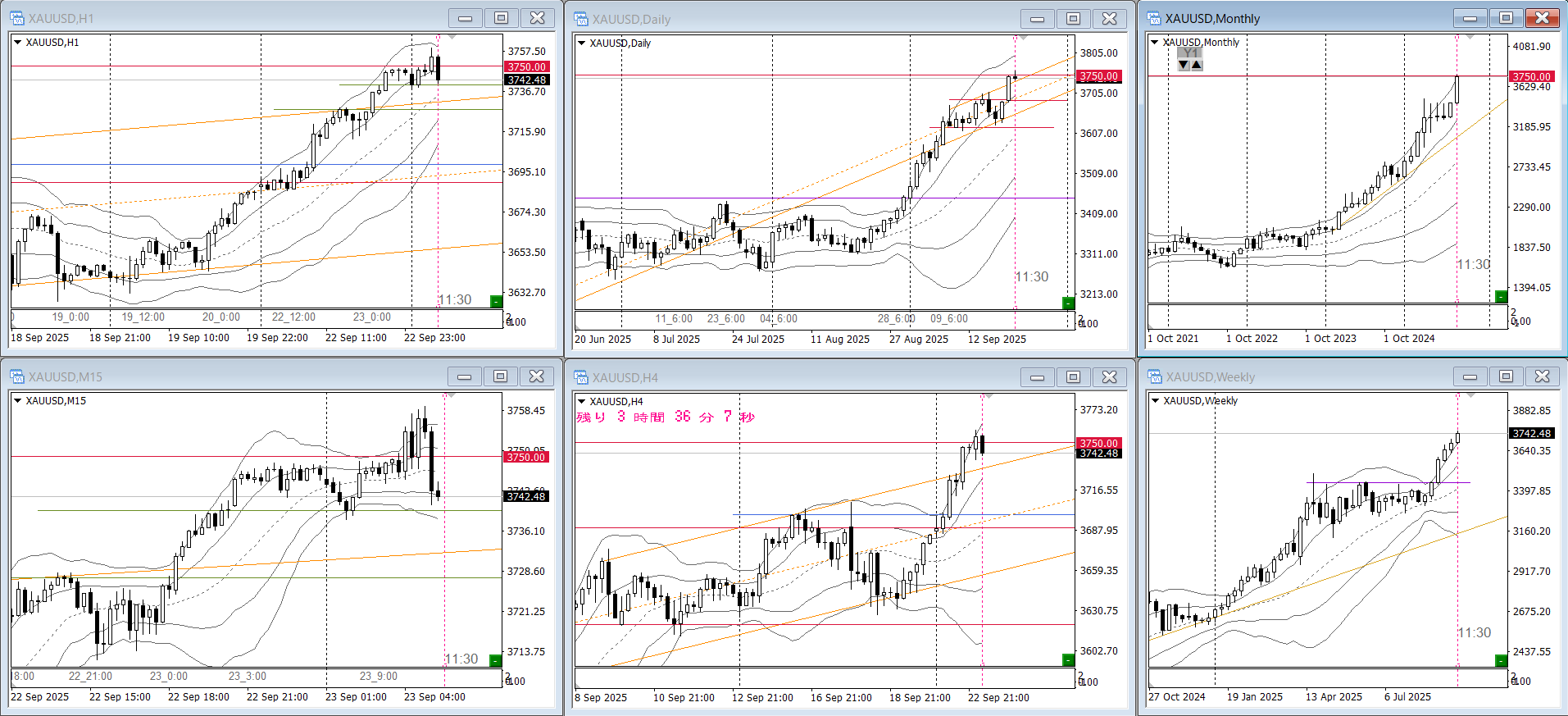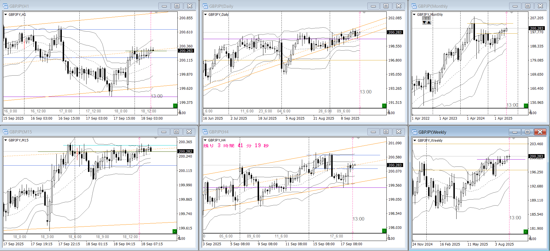 日足抵抗と4H1σが重なりそうなので、赤ラインでの半値戻し