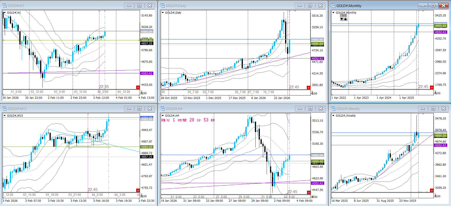 15M長ヒゲチャレンジ後に下限までもどし、証拠金不足による強制ロスカット