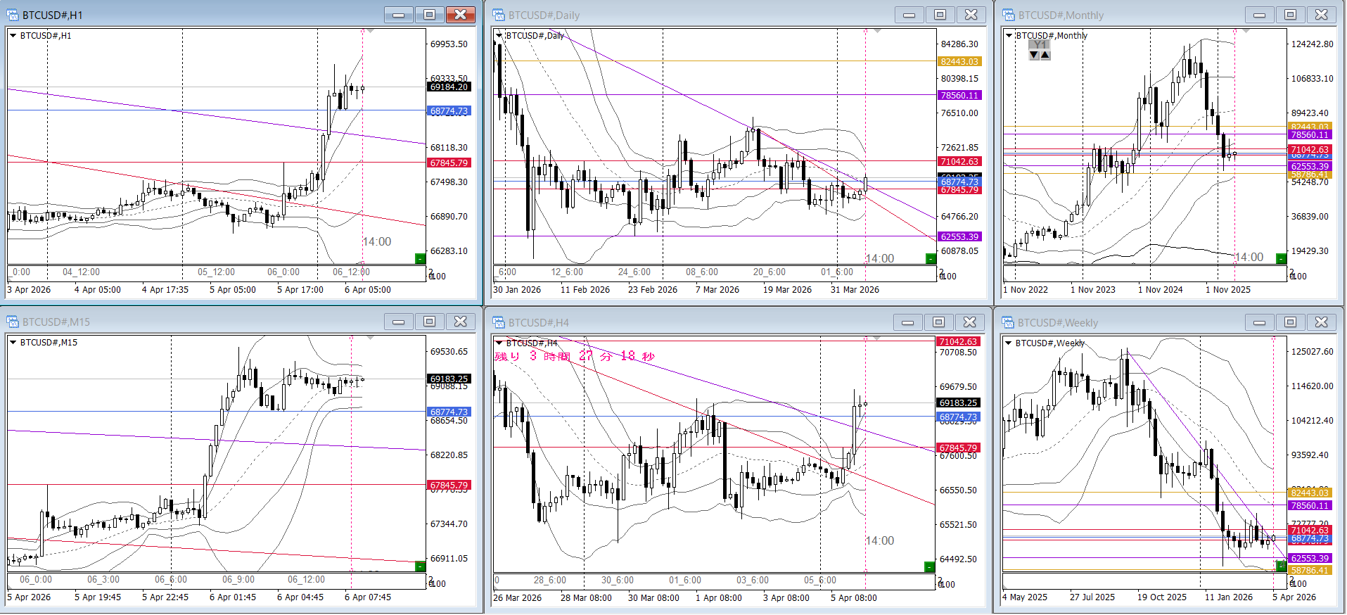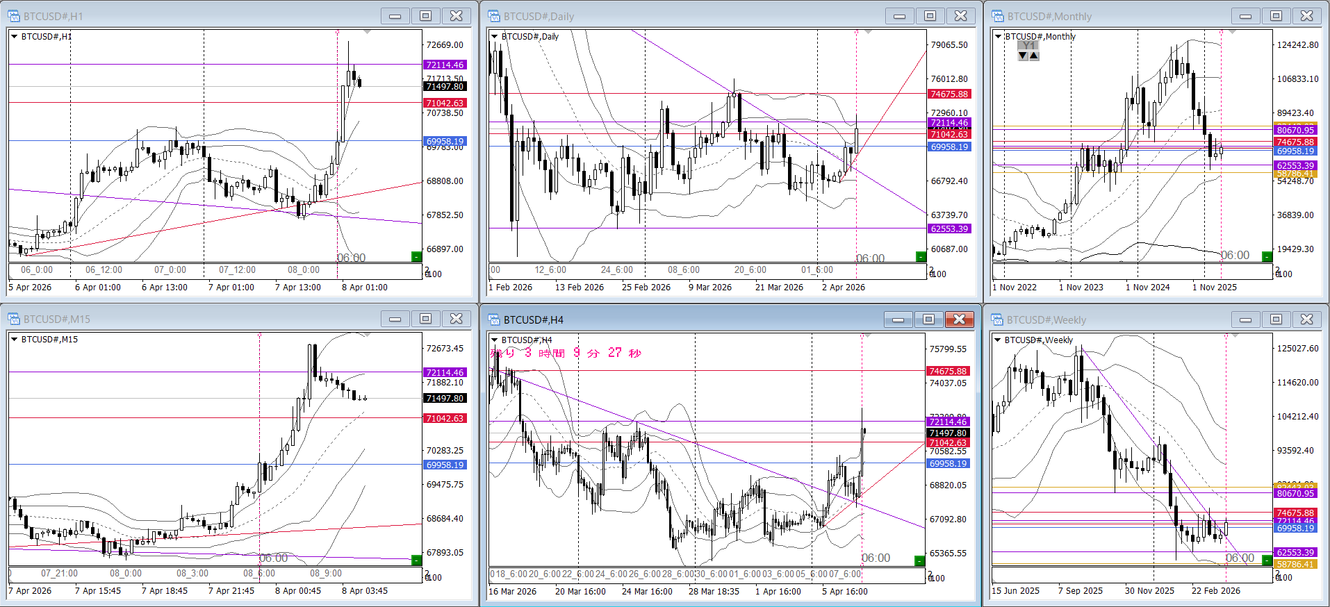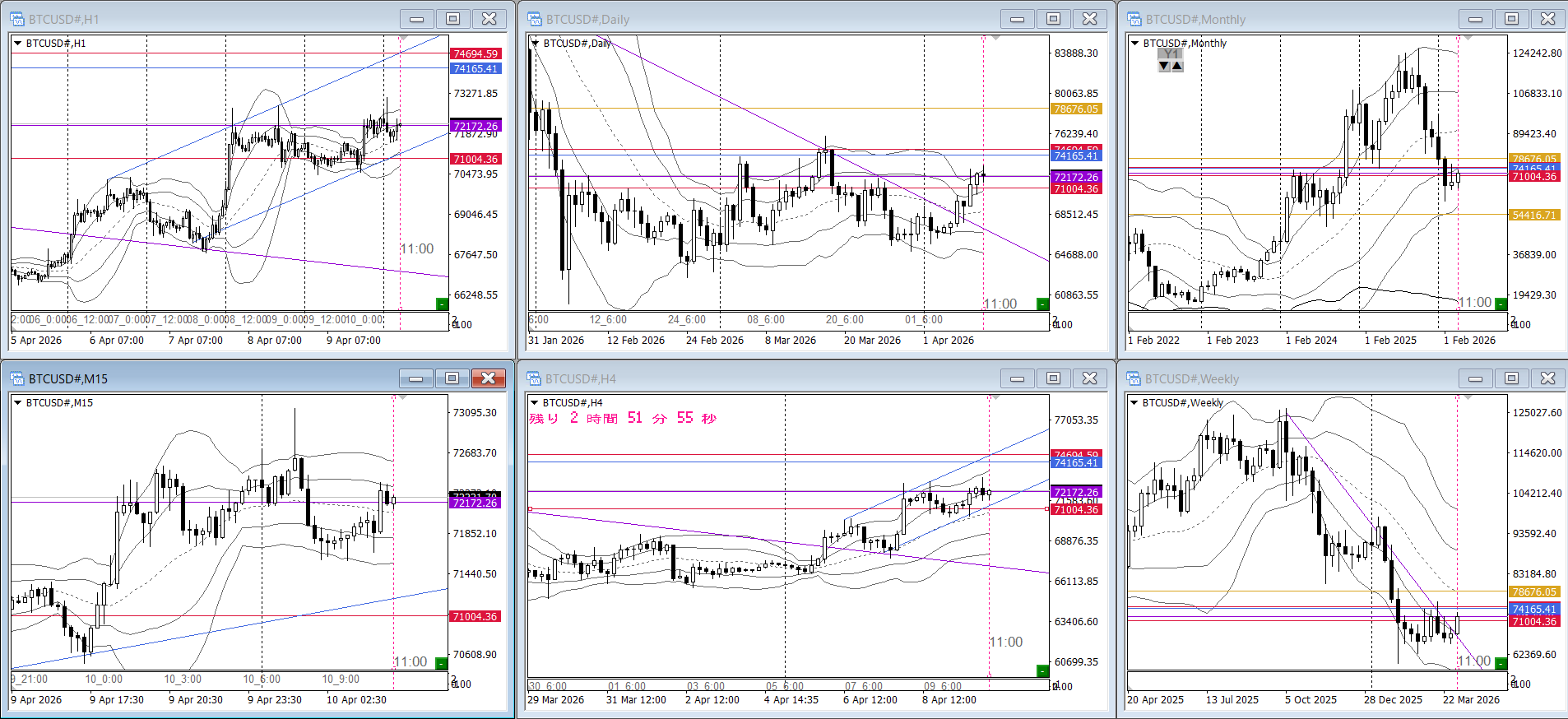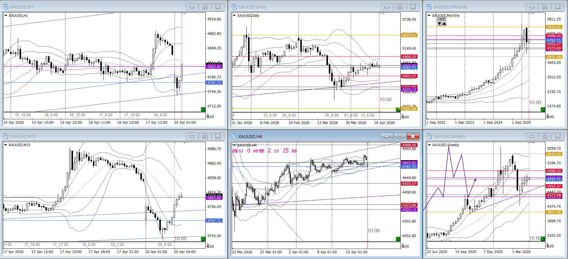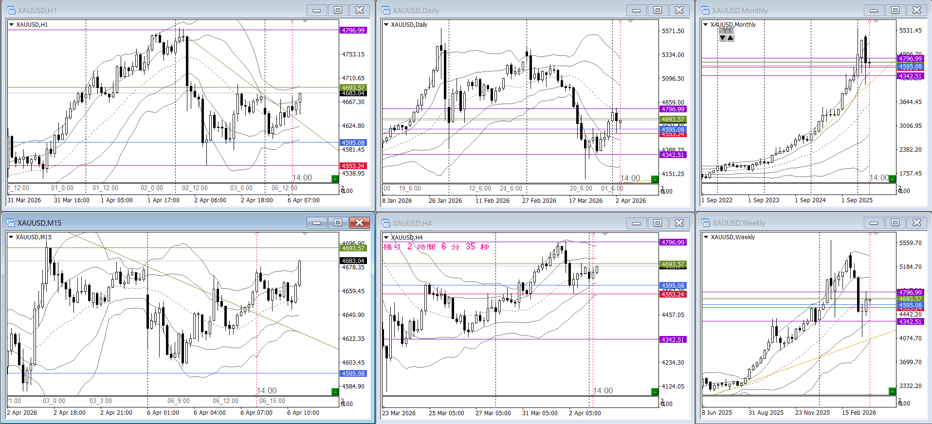BTCは日足レンジ抜けだが、GOLDは4Hレンジ抜けなので