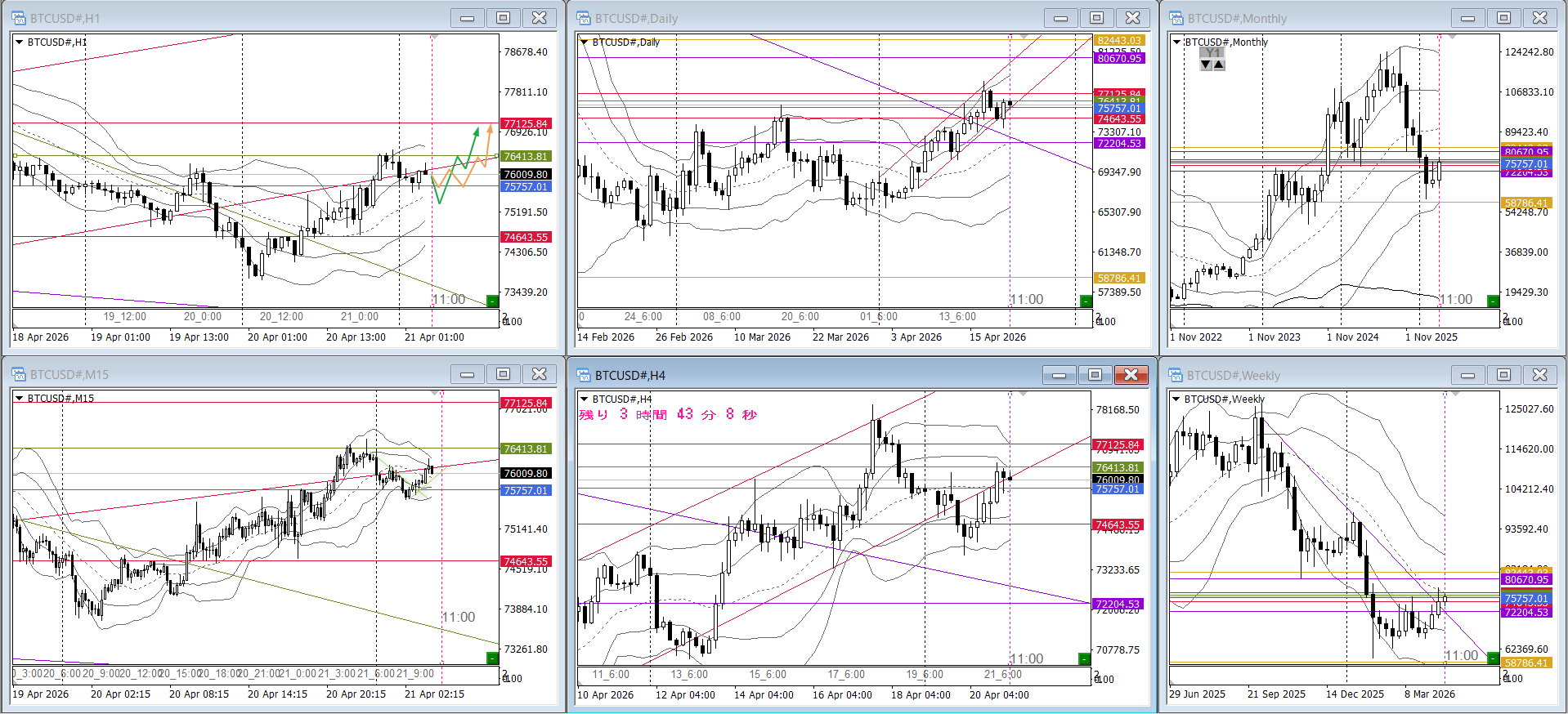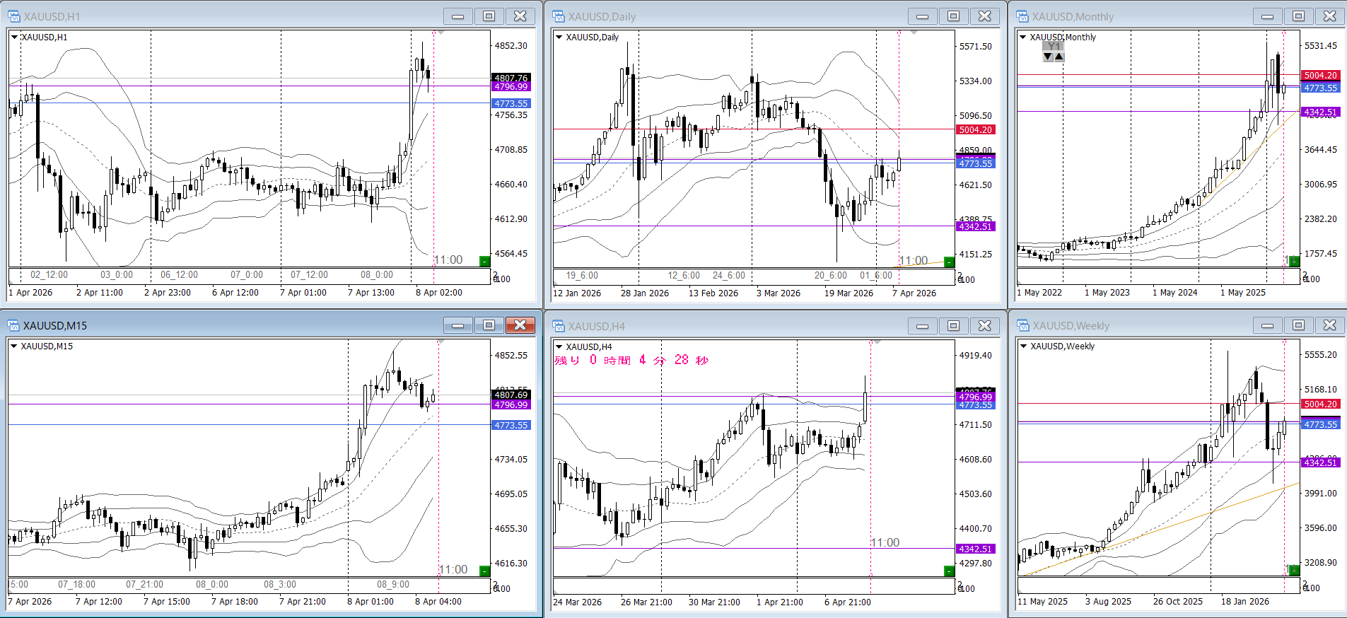 1Hのレンジを抜けたら4Hのカウンターがでる想定