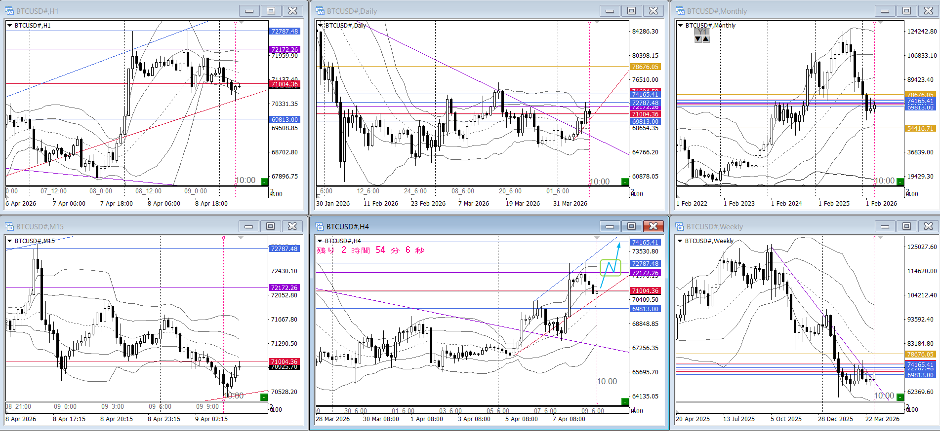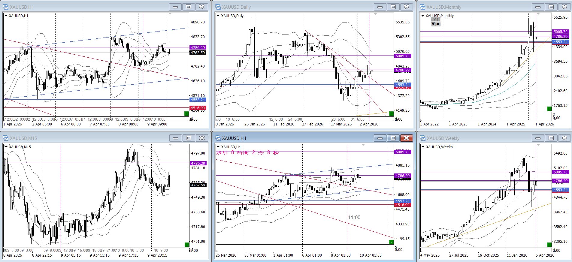が、週足内部転換ラインに対し4Hがチャネルになってしまっていて手が出しづらい