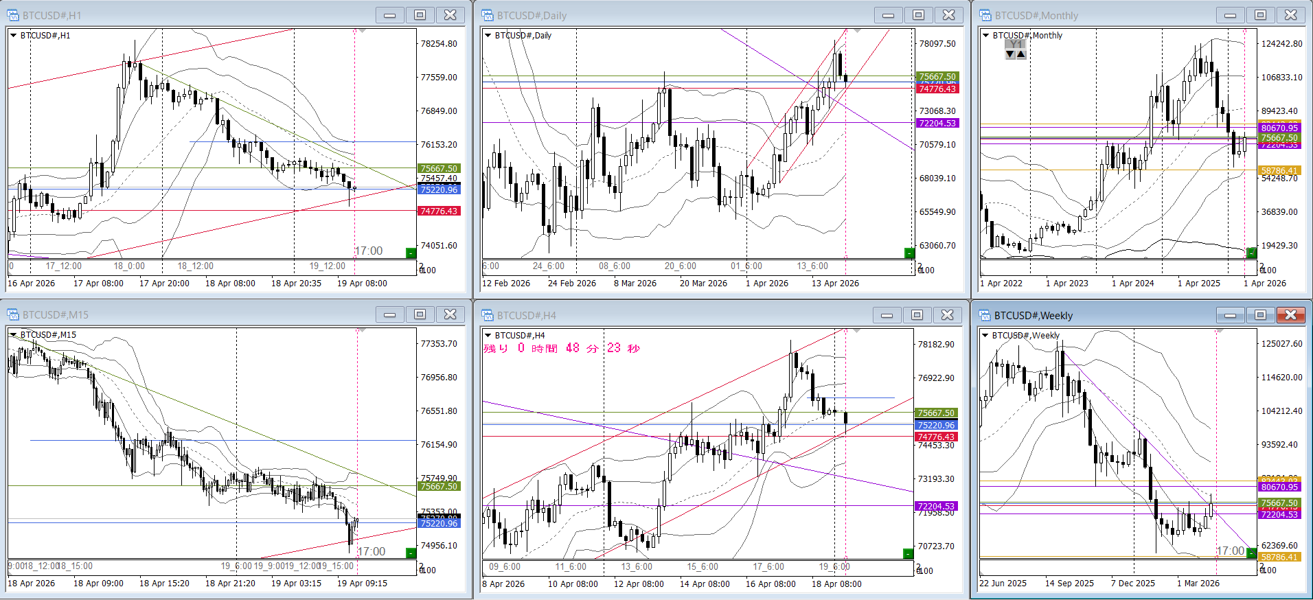 ただ、日足のBBがすくい上げて来てるので、ロング目線も捨てきれない