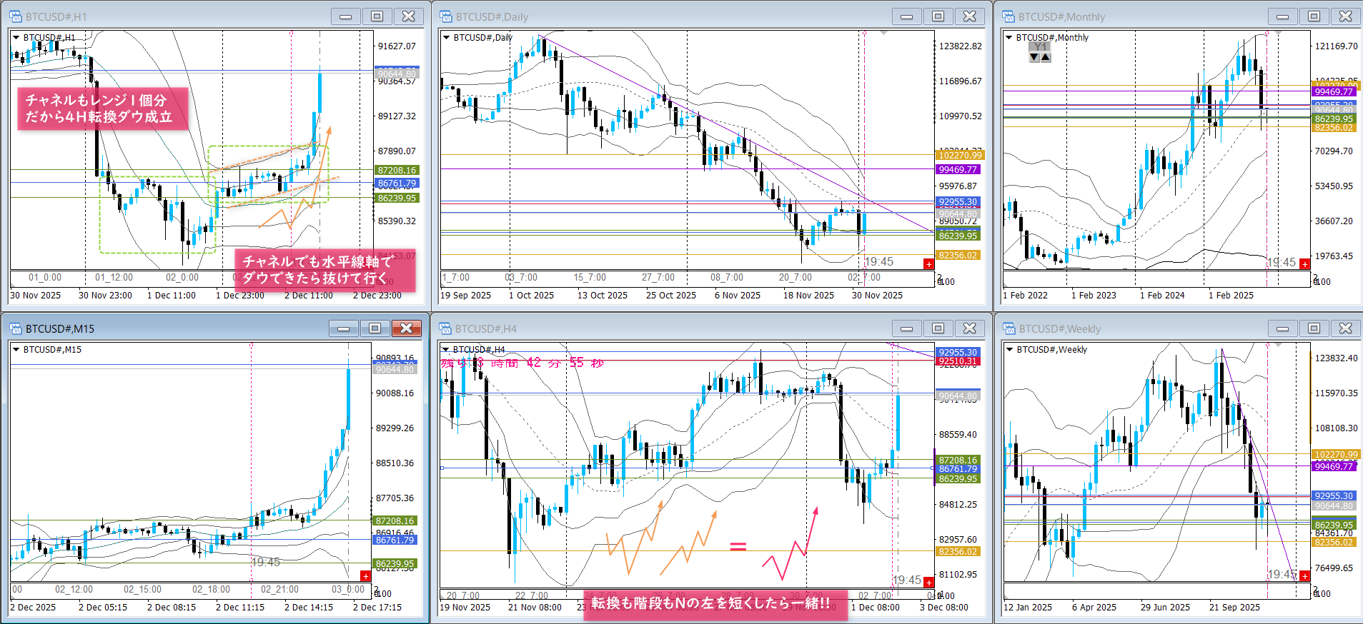 【BTC】1Hミニレンジで15Mレンジと一体化した4Hレンジ調整波