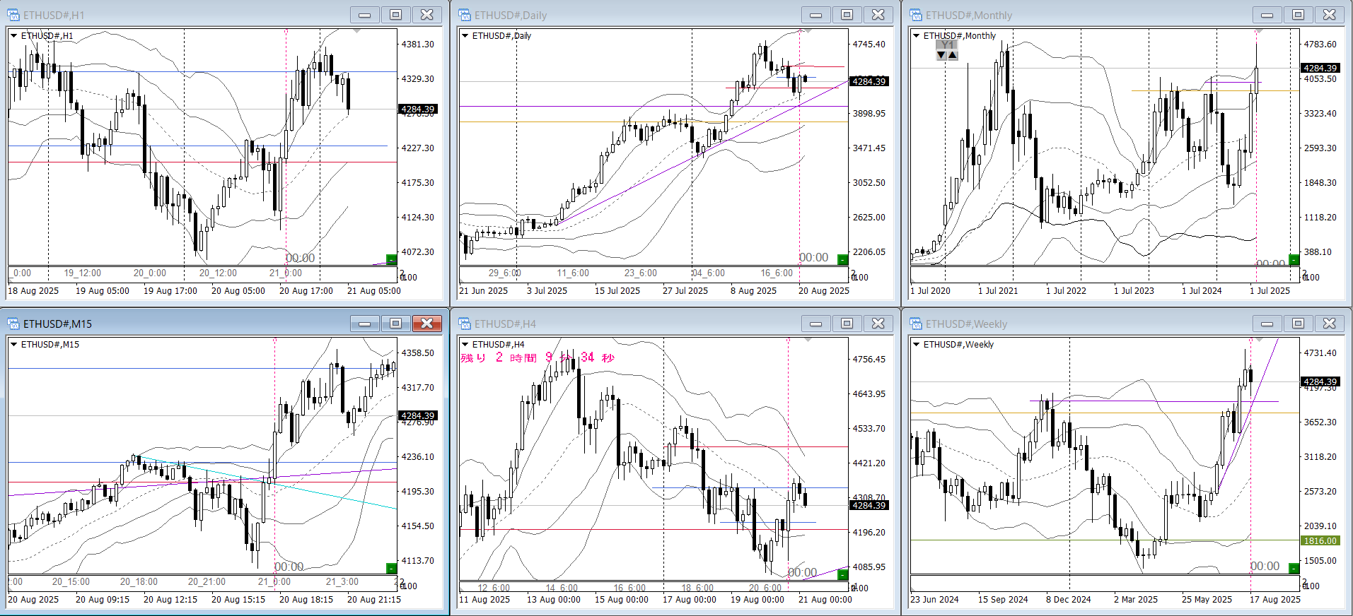 日足の1σ反発で4H中段まで波が出て抜けたら
