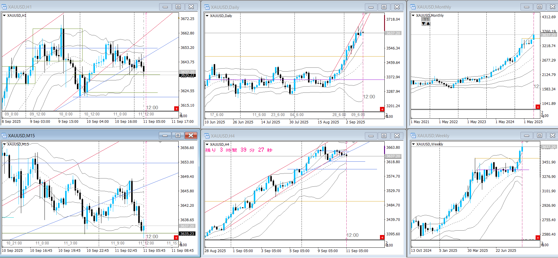 【GOLD】日足レンジで方向感ないなら4Hで捌く例②~トレンド編~