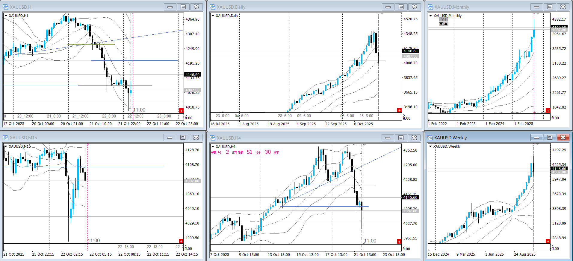 で4Hで落ちてきたら4Hレベルの半値戻しが発生する