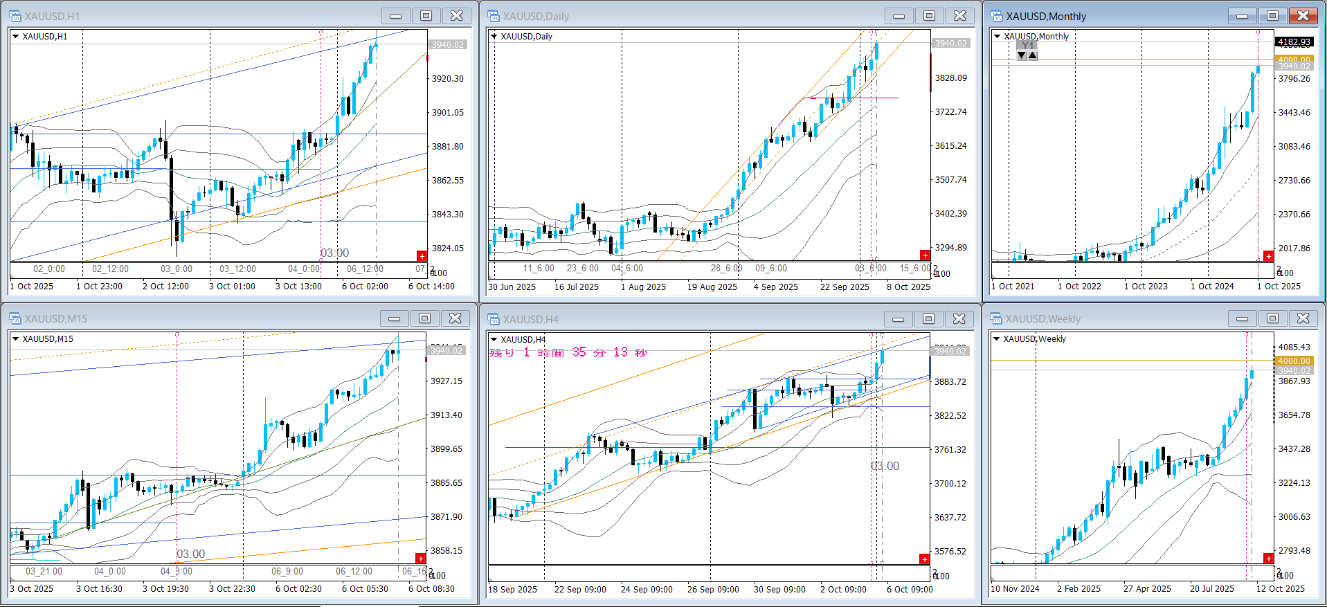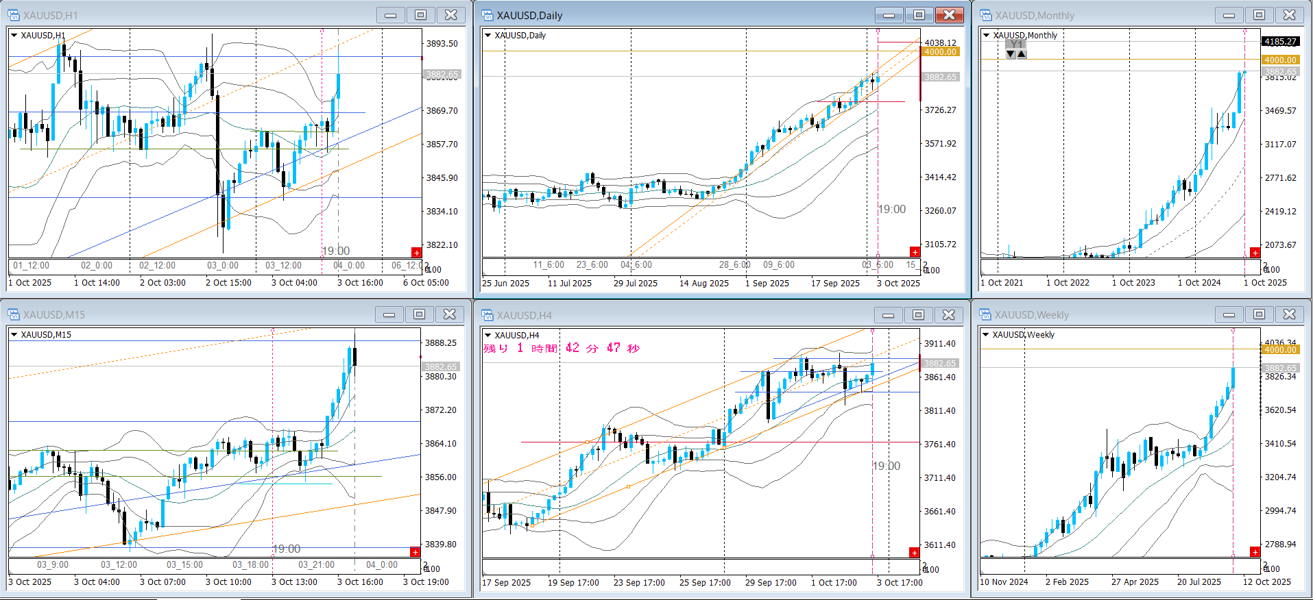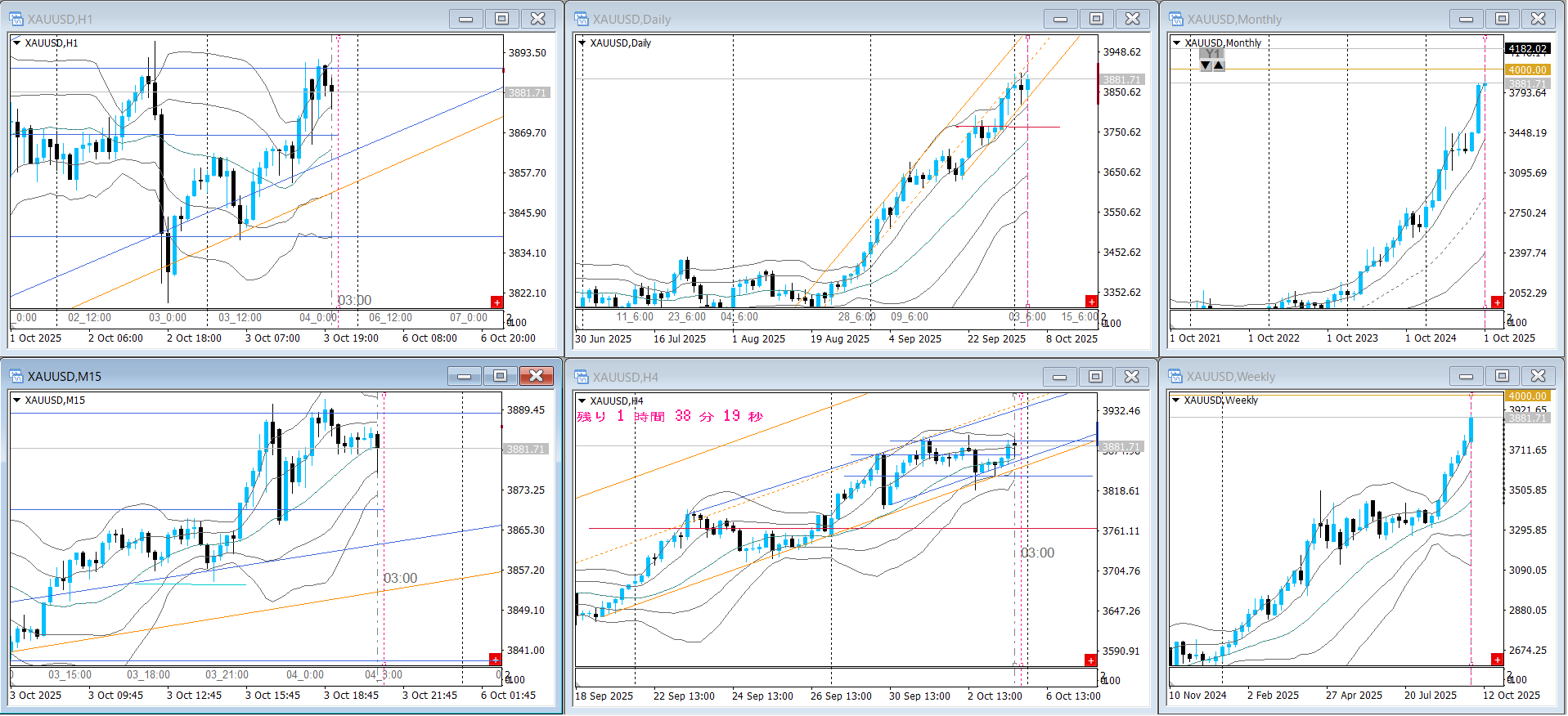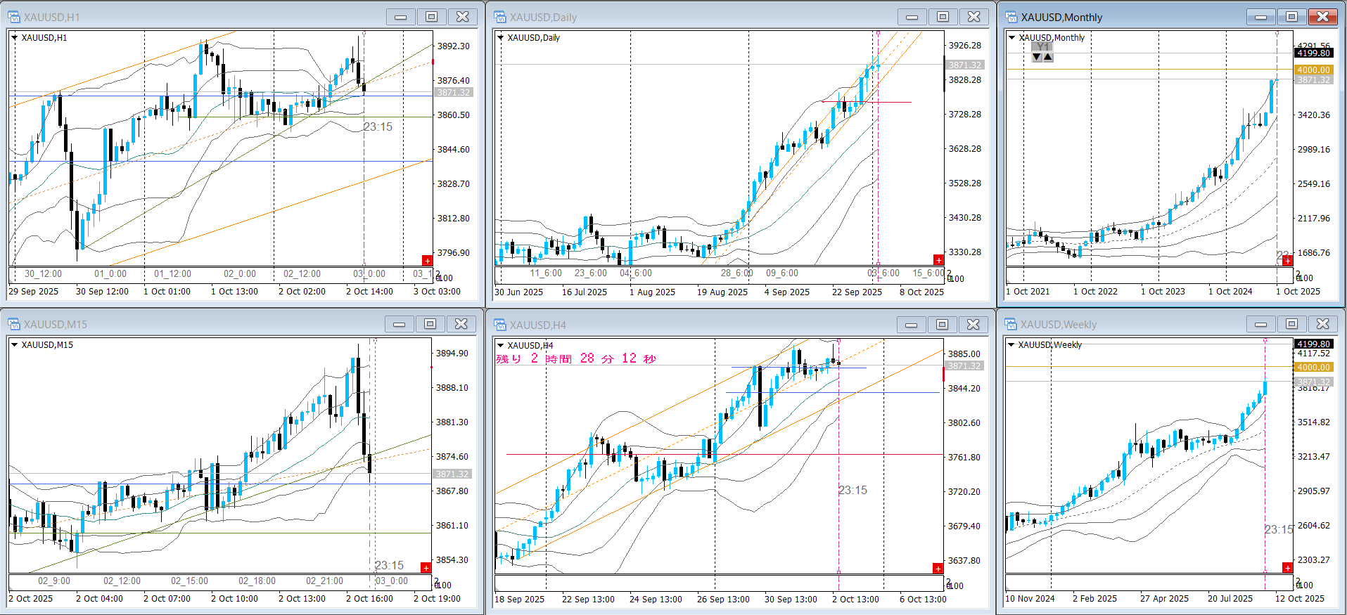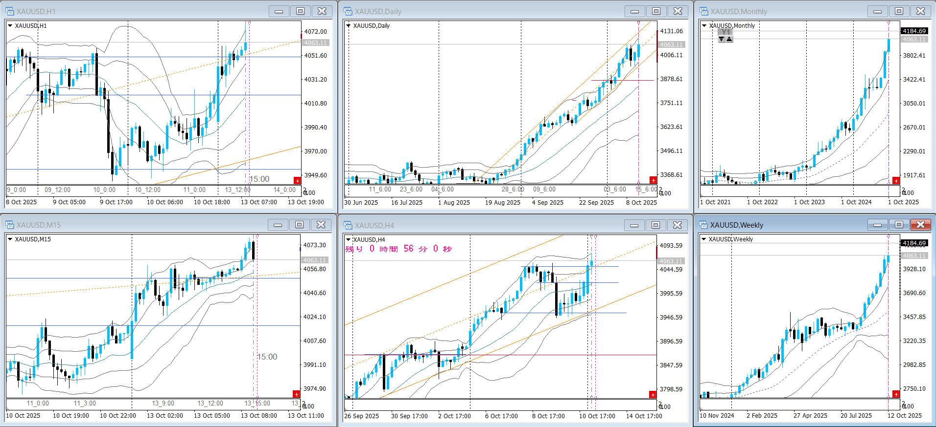 その戻しが15Mチャネルになってブレイクしてようやく4Hゴールに到達