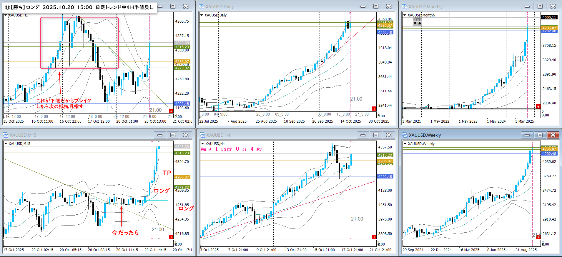 4Hの半値戻しだから1Hの調整波で谷までって感覚あってる?