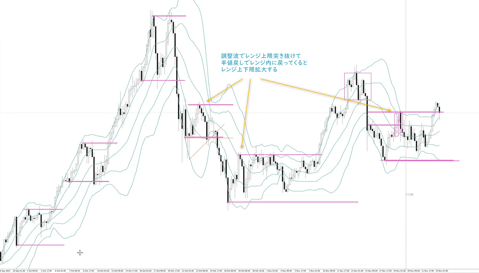 下ブロック下限からのレンジ調整波が4H半値戻しに該当