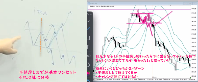 調整半値の基本セットが肩で抑えられて三尊完成するので